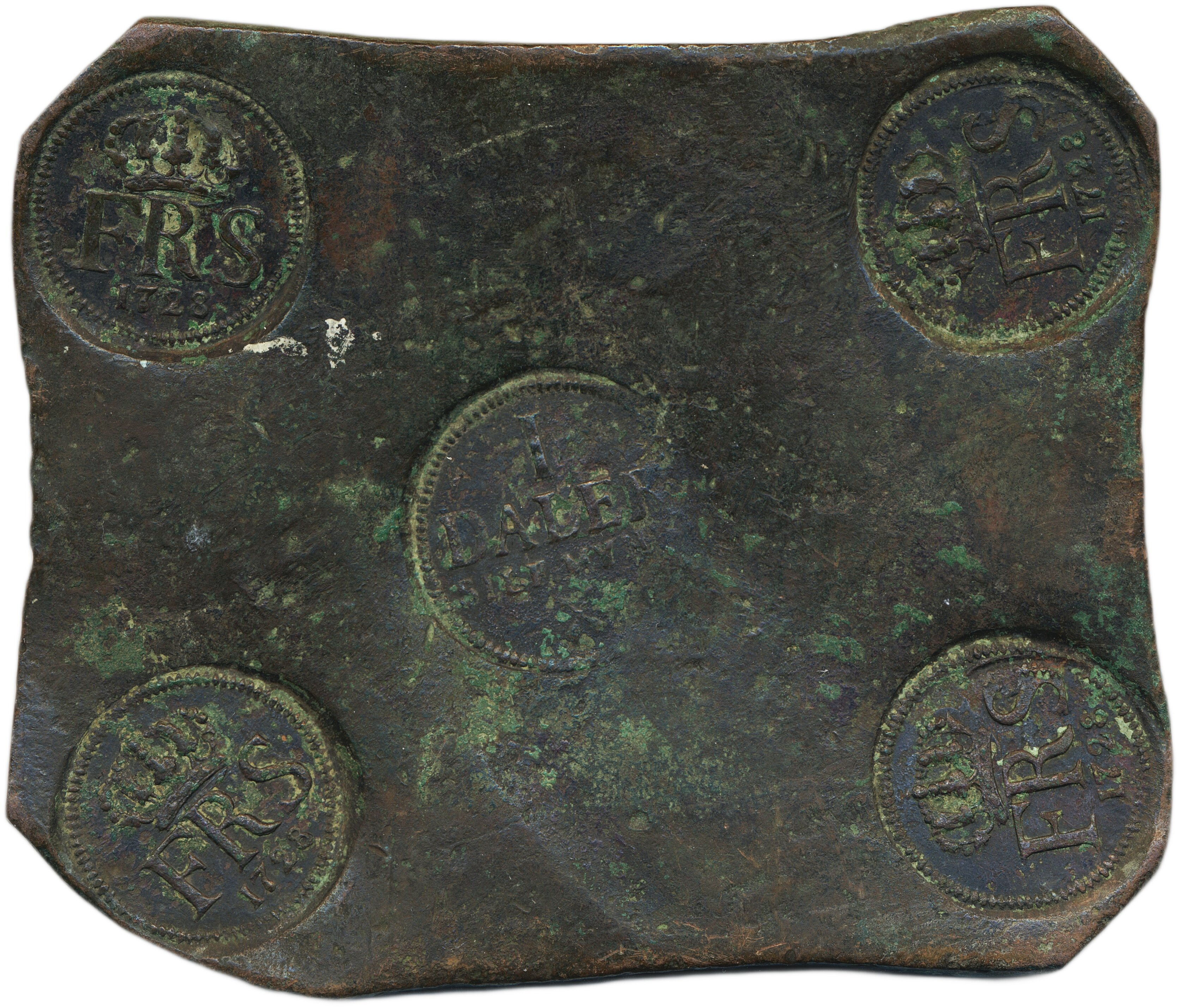 Coins, Sweden. Fredrik I, SM 254, 1 daler (plate money) 1728. 750 g. Avesta. R. 1/1+.
