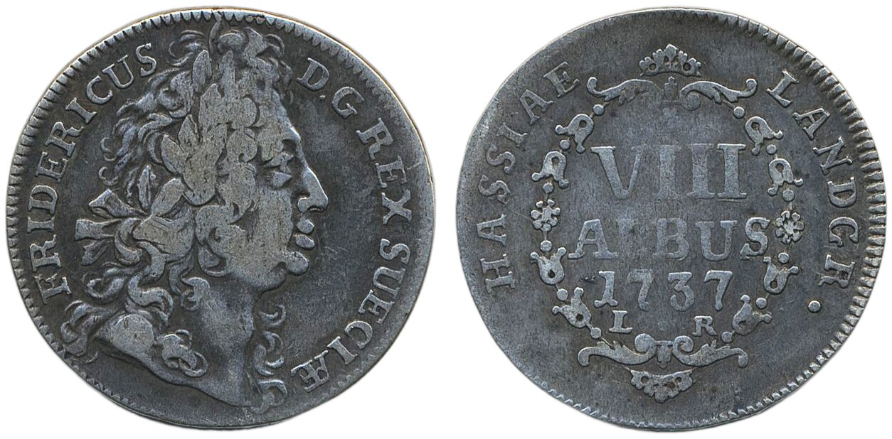 Coins, Sweden, Hesse-Cassel. Fredrik I, SMB 441, 8 albus 1737. 5.93 g. 1/1+.