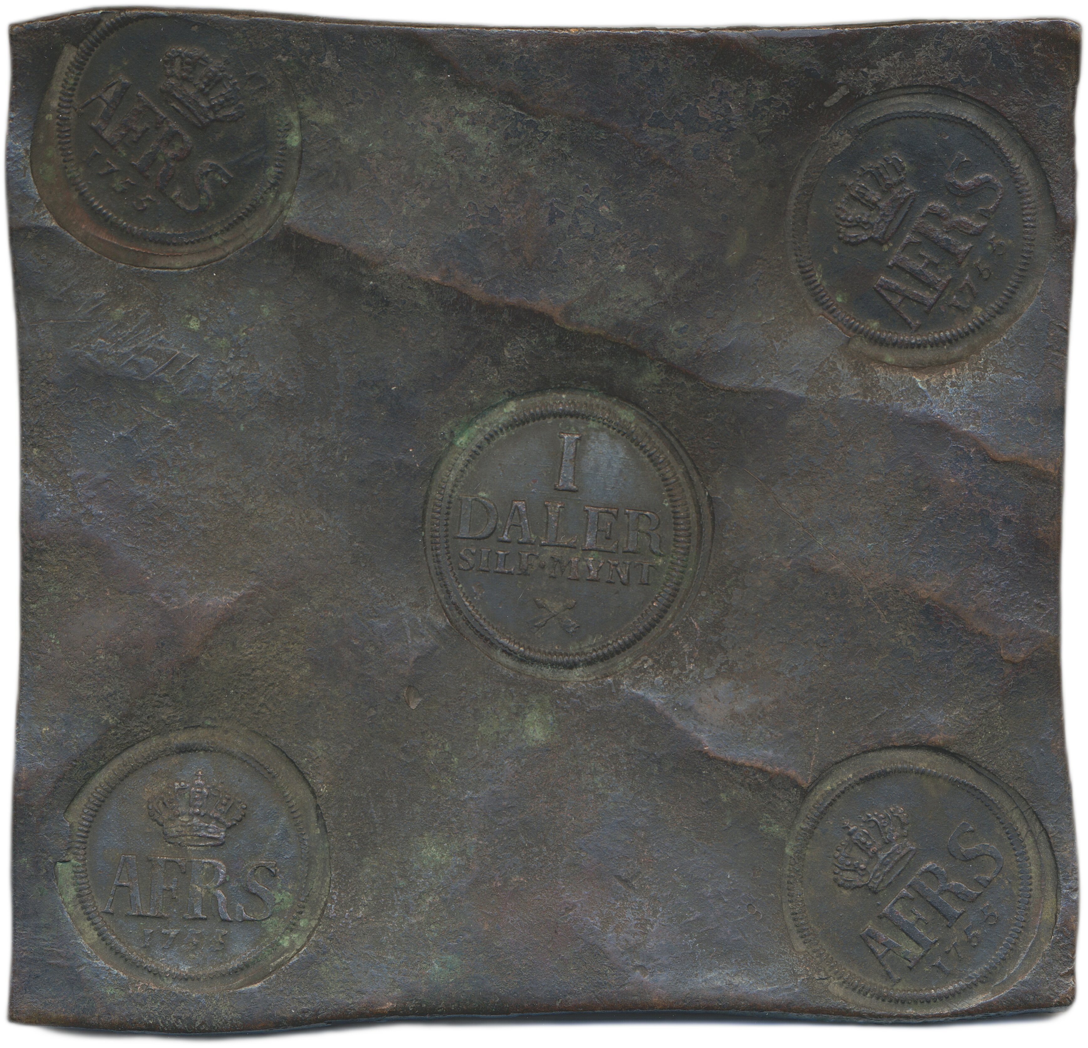 Coins, Sweden. Adolf Fredrik, SM 144, 1 daler (plate money) 1755. 695 g. Avesta. A beautiful example of a rare year. R. 1+/01.