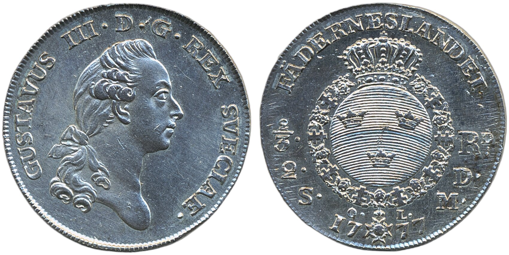 Coins, Sweden. Gustav III, SM 56, 2/3 riksdaler 1777. 19.57 g. Stockholm. Cleaned. 01)(01/0.