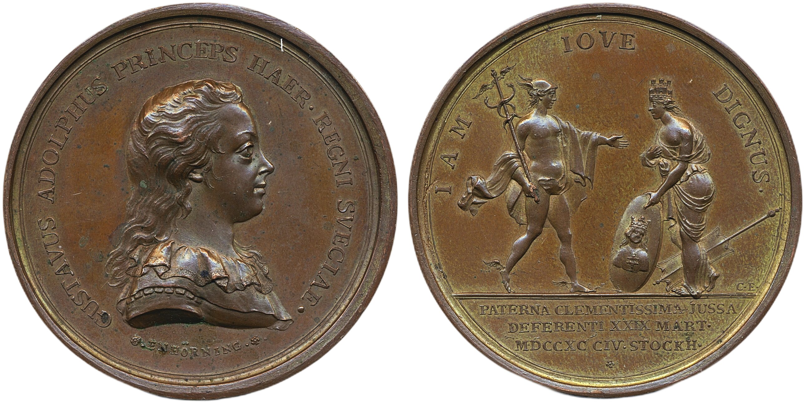 Medals, regal, Sweden. Gustav IV Adolf, SKM 2c, 1790. 70.57 g. Bronze medal by Enhörning, IAM IOVE DIGNUS. Scarce. 01.