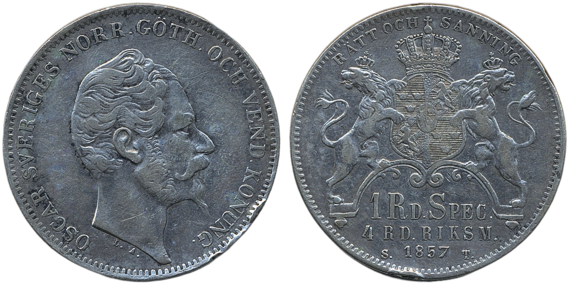 Coins, Sweden. Oskar I, SM 57, 4 riksdaler riksmynt 1857. 1.