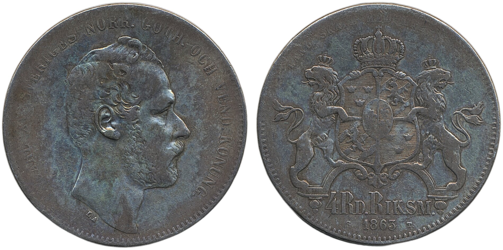 Coins, Sweden. Karl XV, SM 16, 4 riksdaler riksmynt 1863. 33.84 g. 1.