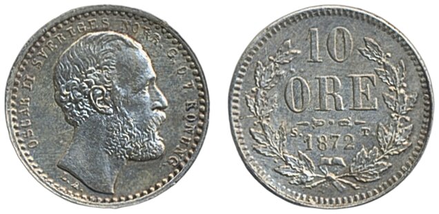 Coins, Sweden. Oskar II, SM 43a, 10 öre 1873. 01/0.