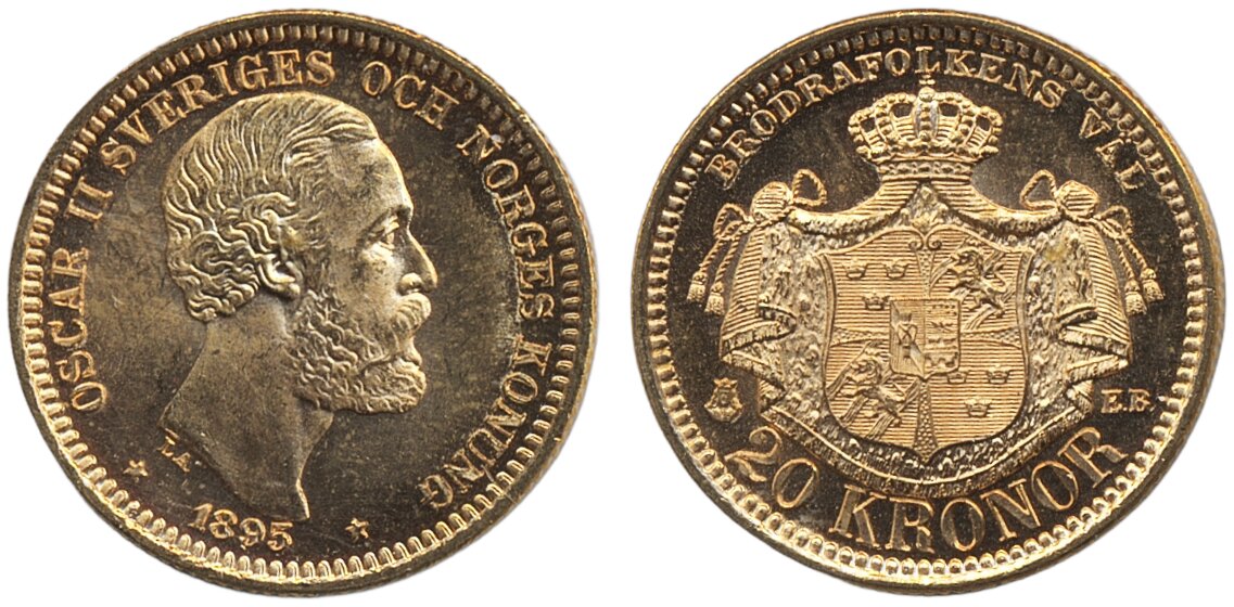 Coins, Sweden. Oskar II, SM 18, 20 kronor 1895. 01/0.