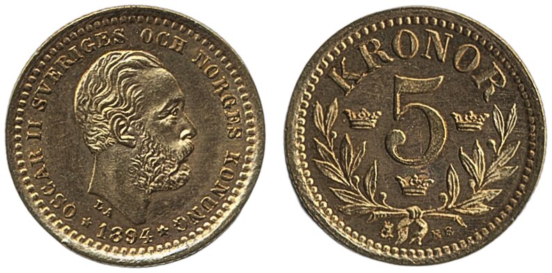 Coins, Sweden. Oskar II, SM 38, 5 kronor 1894. 01.