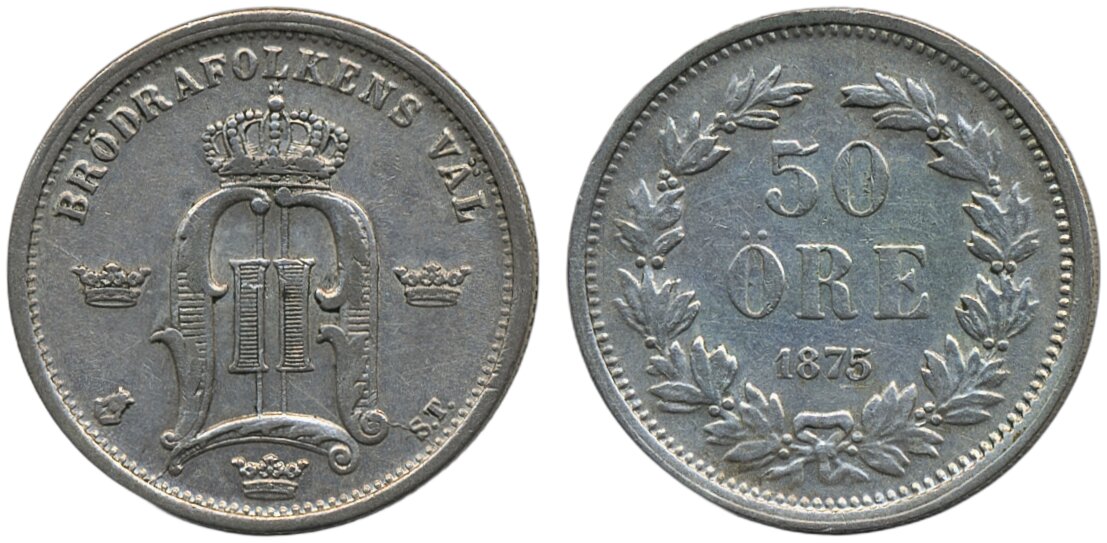 Coins, Sweden. Oskar II, MIS I.2a, 50 öre 1875. 1+.