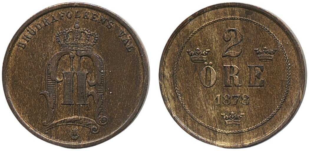 Coins, Sweden. Oskar II, MIS I.5, 2 öre 1878. Short text. Scarce. 1+.