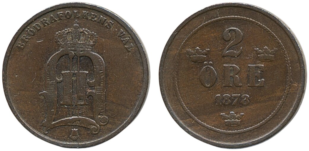 Coins, Sweden. Oskar II, MIS I.5, 2 öre 1878. 1.