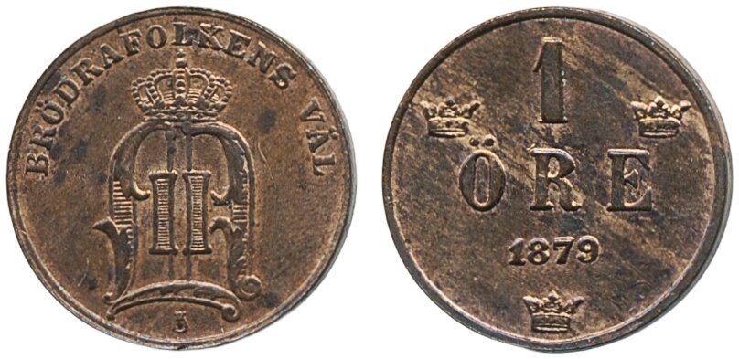 Coins, Sweden. Oskar II, MIS II.3a, 1 öre 1879. 01/0.