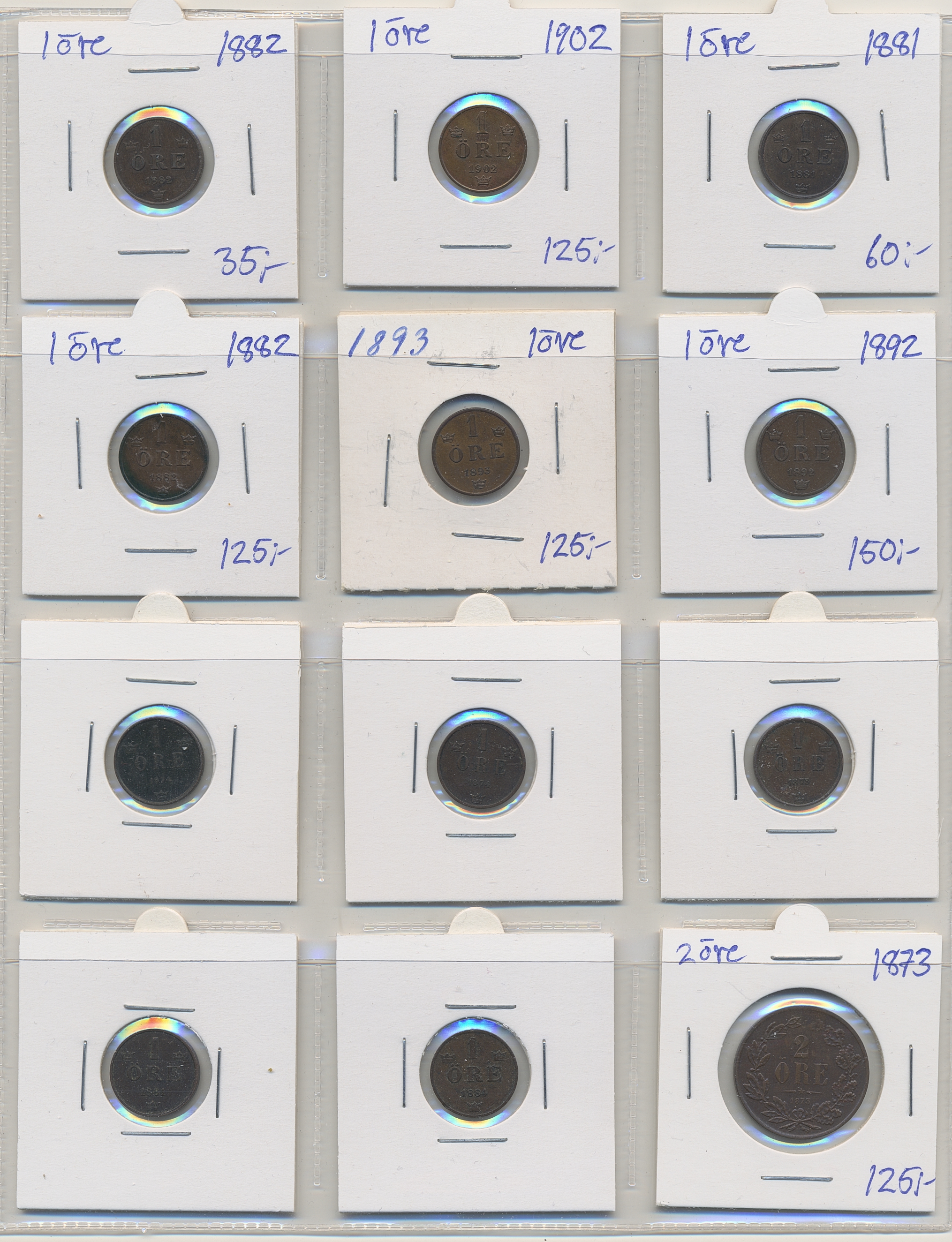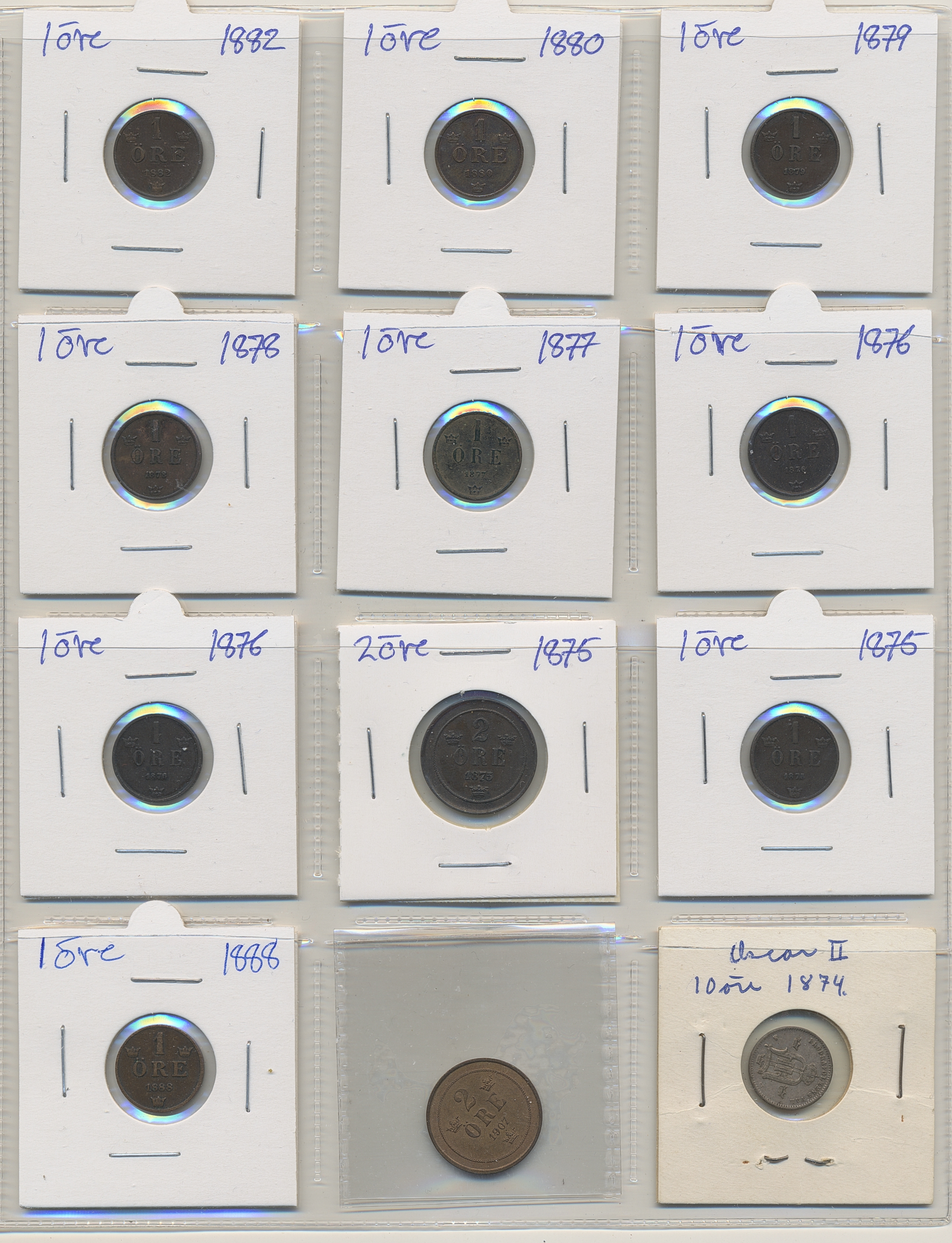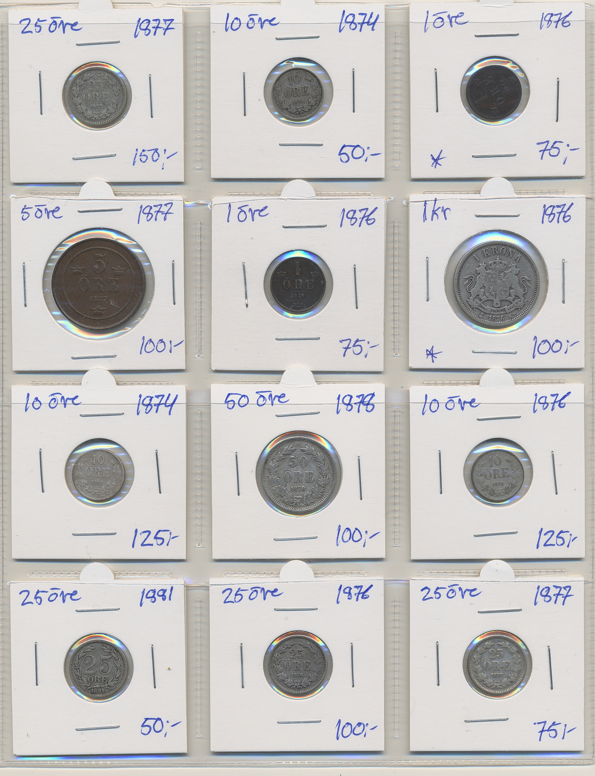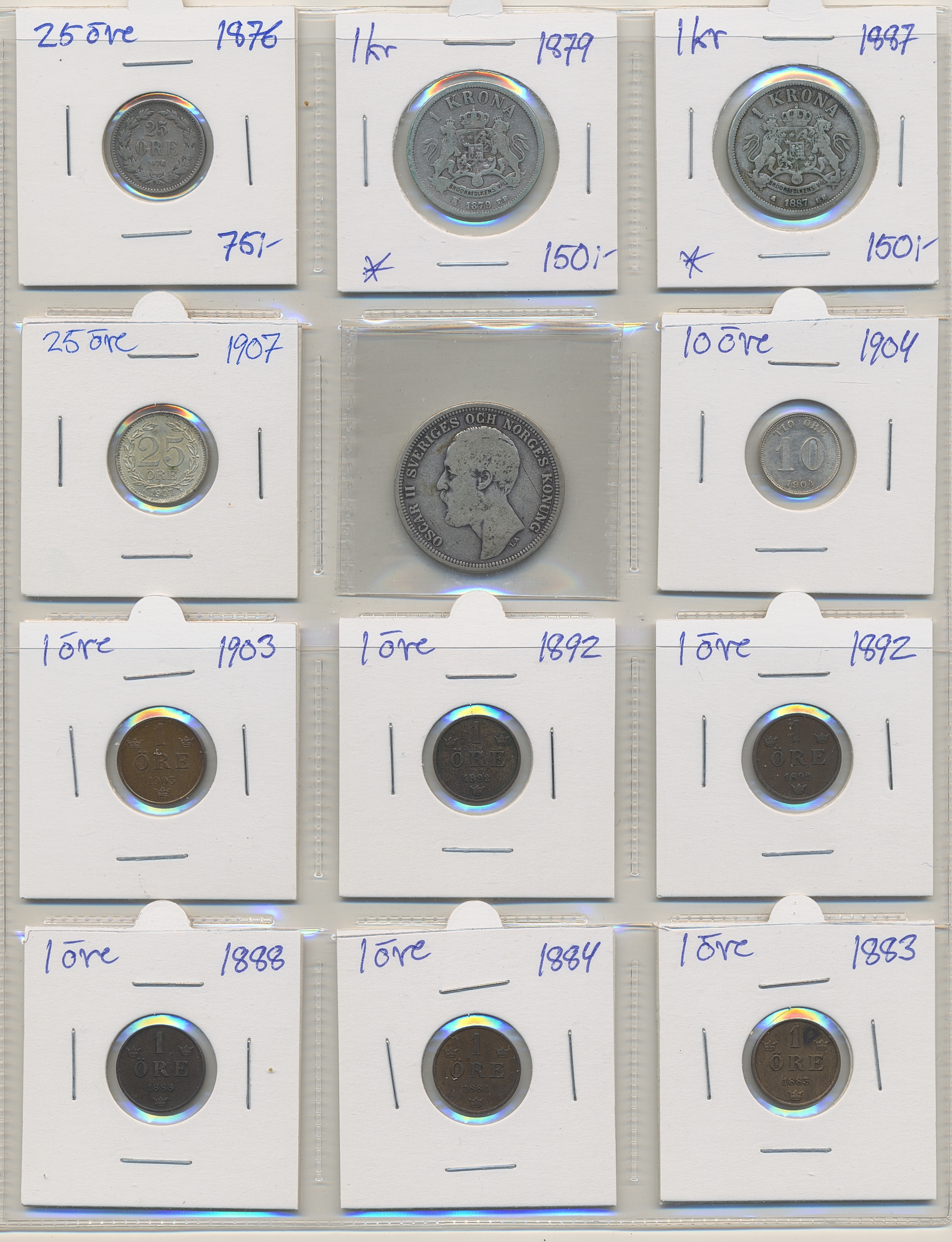 Coins, Sweden. Oskar II, One album with 120 coins in silver and bronze, 1873–1907, mixed quality.