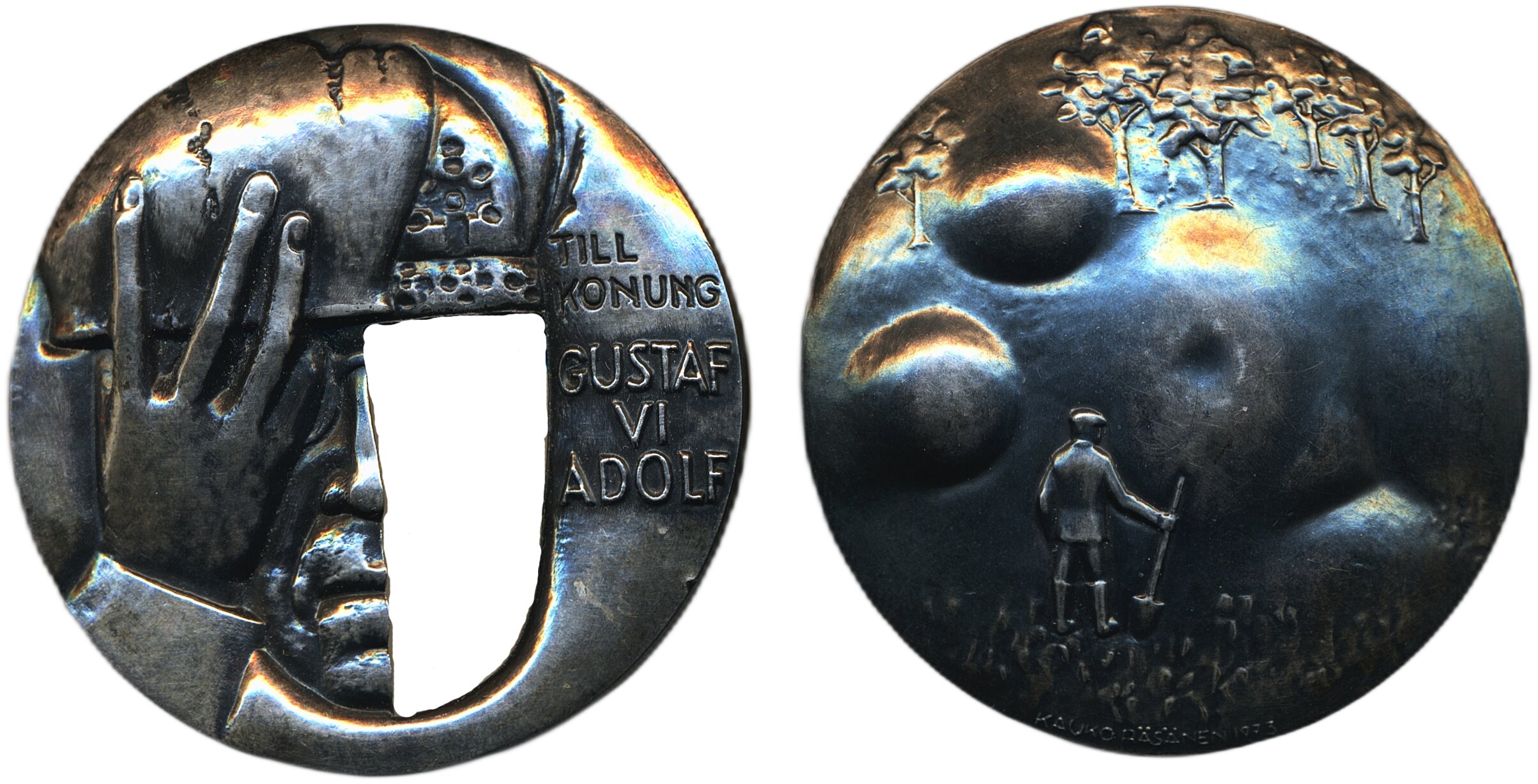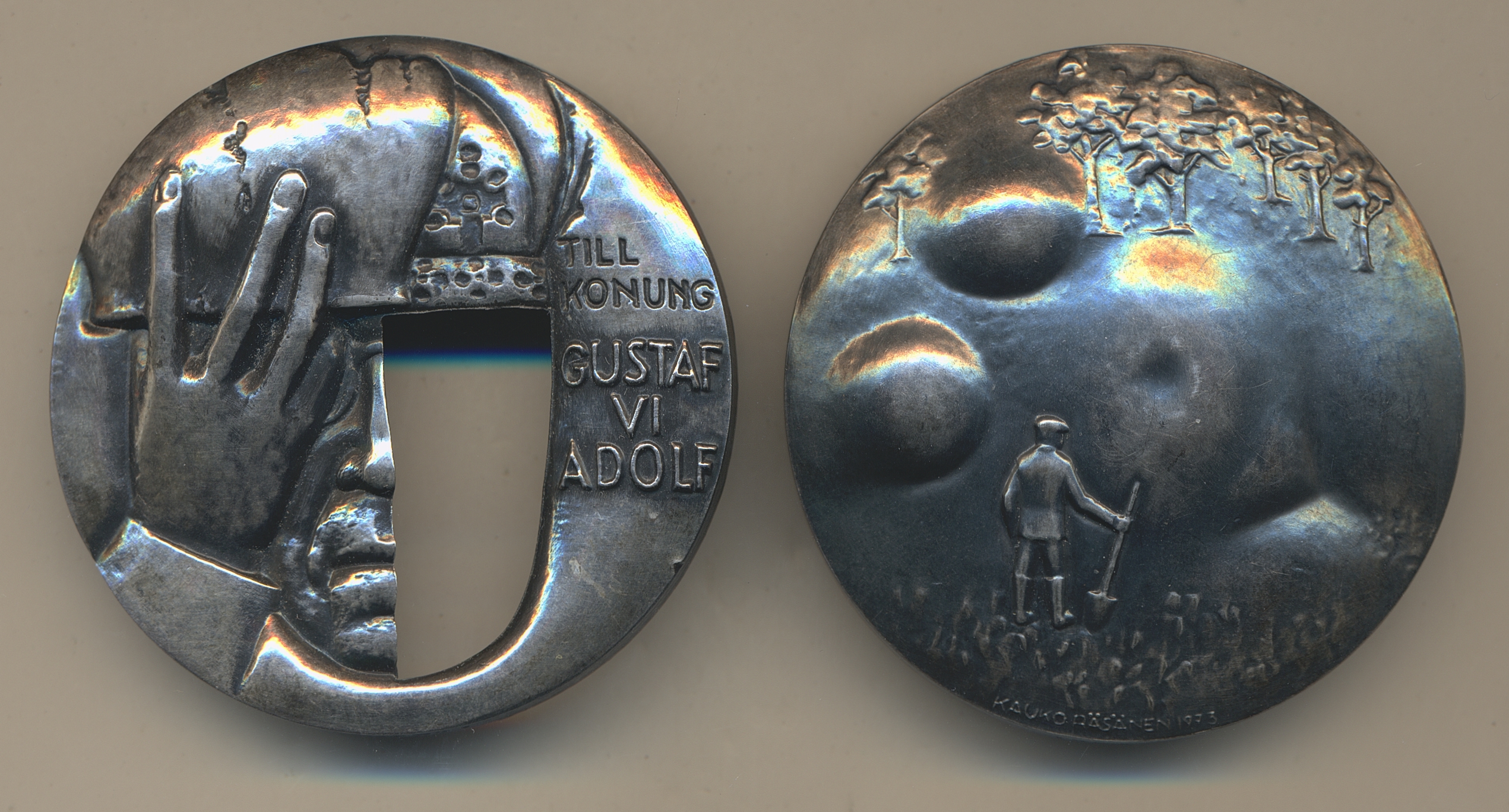 Medals, regal, Sweden. Gustav VI Adolf, 1973. 256.14 g. silver, Gustaf VI Adolf, Kauko Räsänen, No: 123 of 1000. 0. Mintage: 1000.