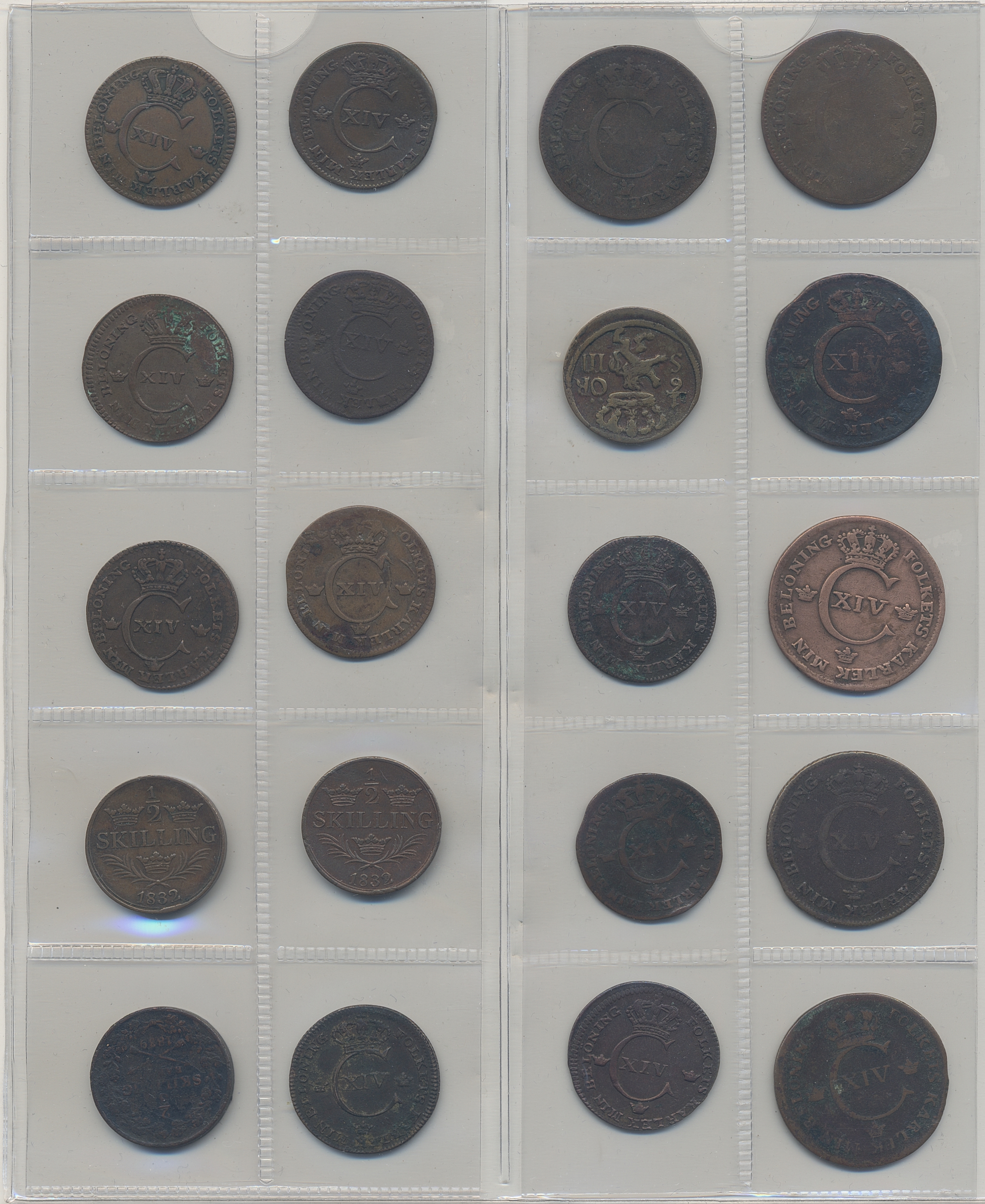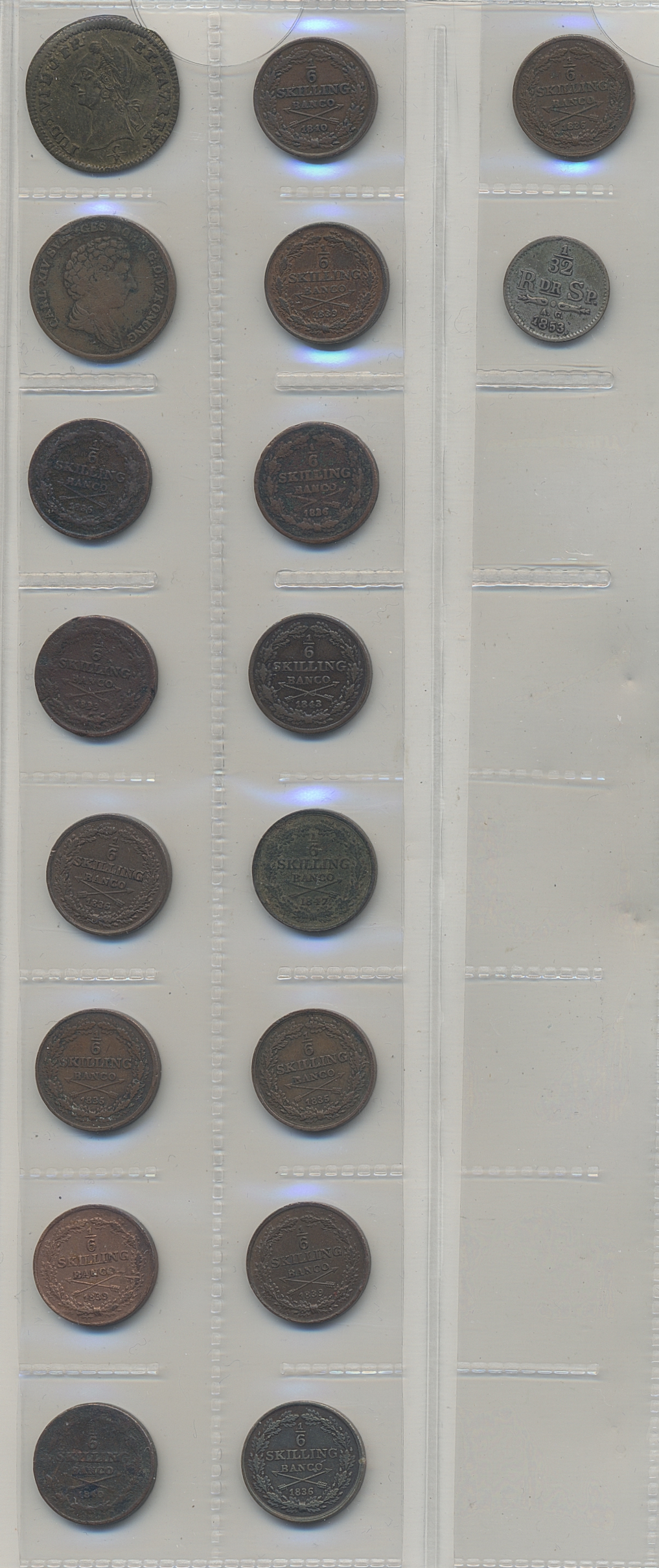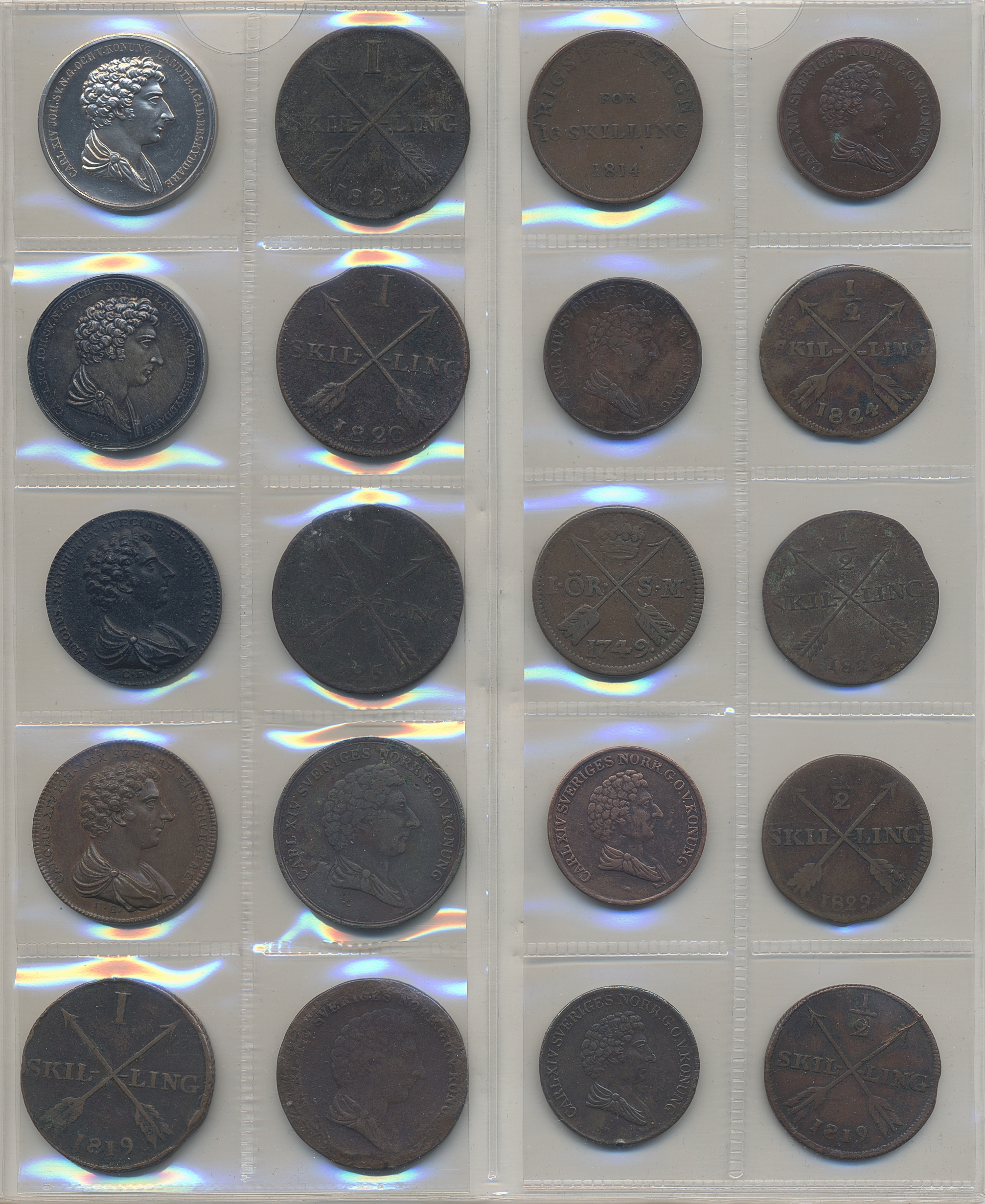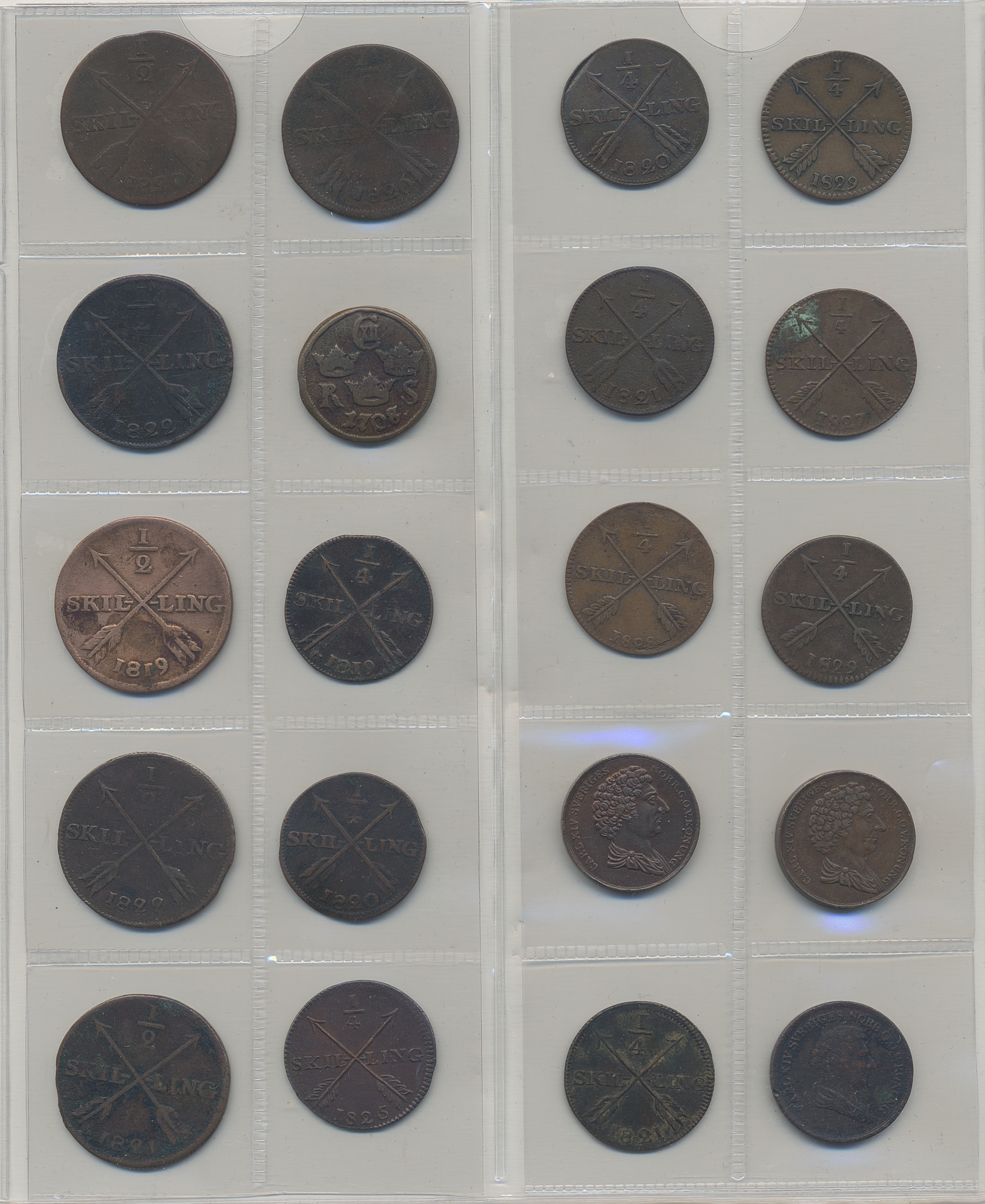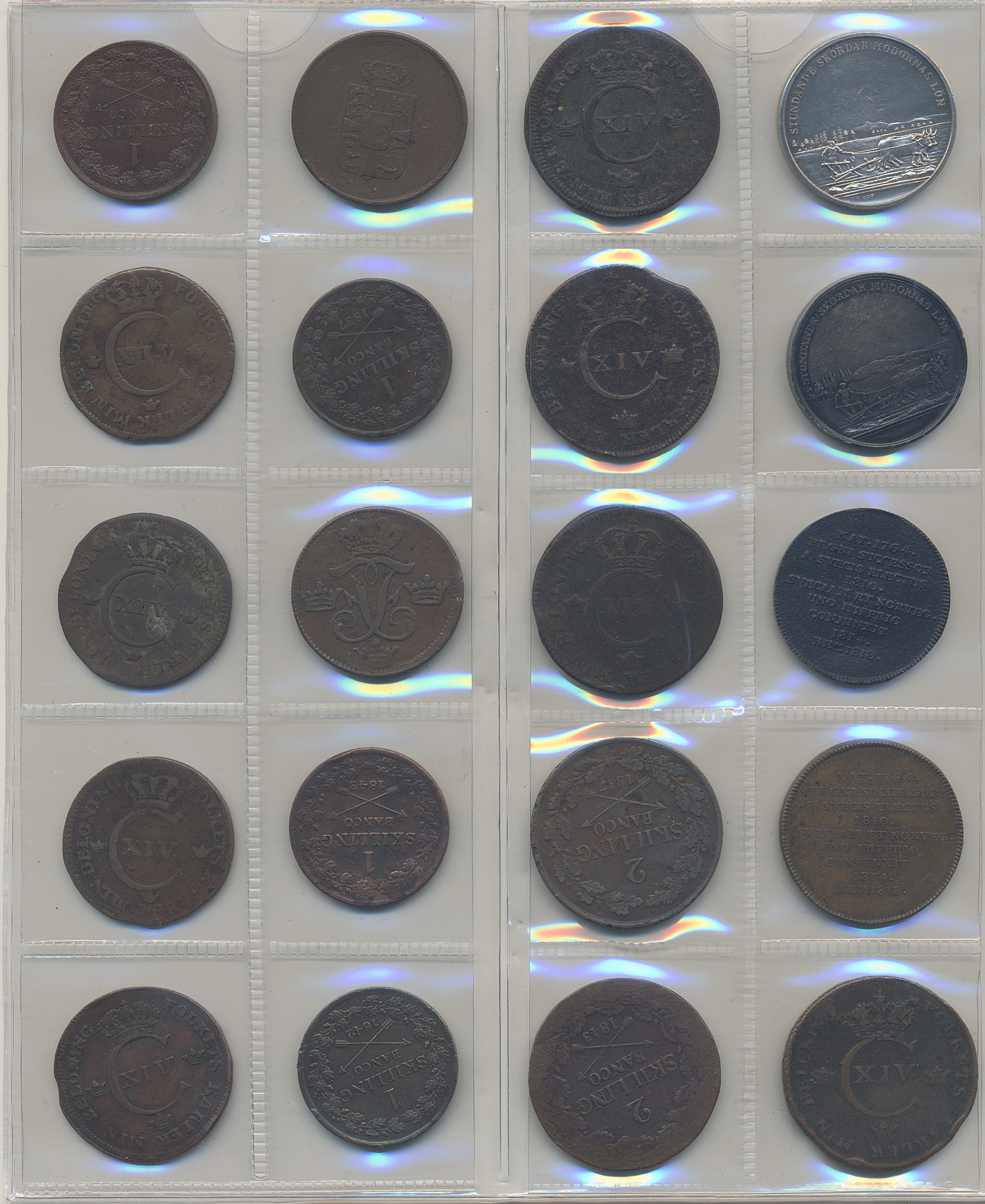 Coins, Sweden. Group of Swedish silver and copper coins from 1600s–1900s. Please inspect! Also a few Swedish banknotes. Mixed quality. 1?-1+/01.