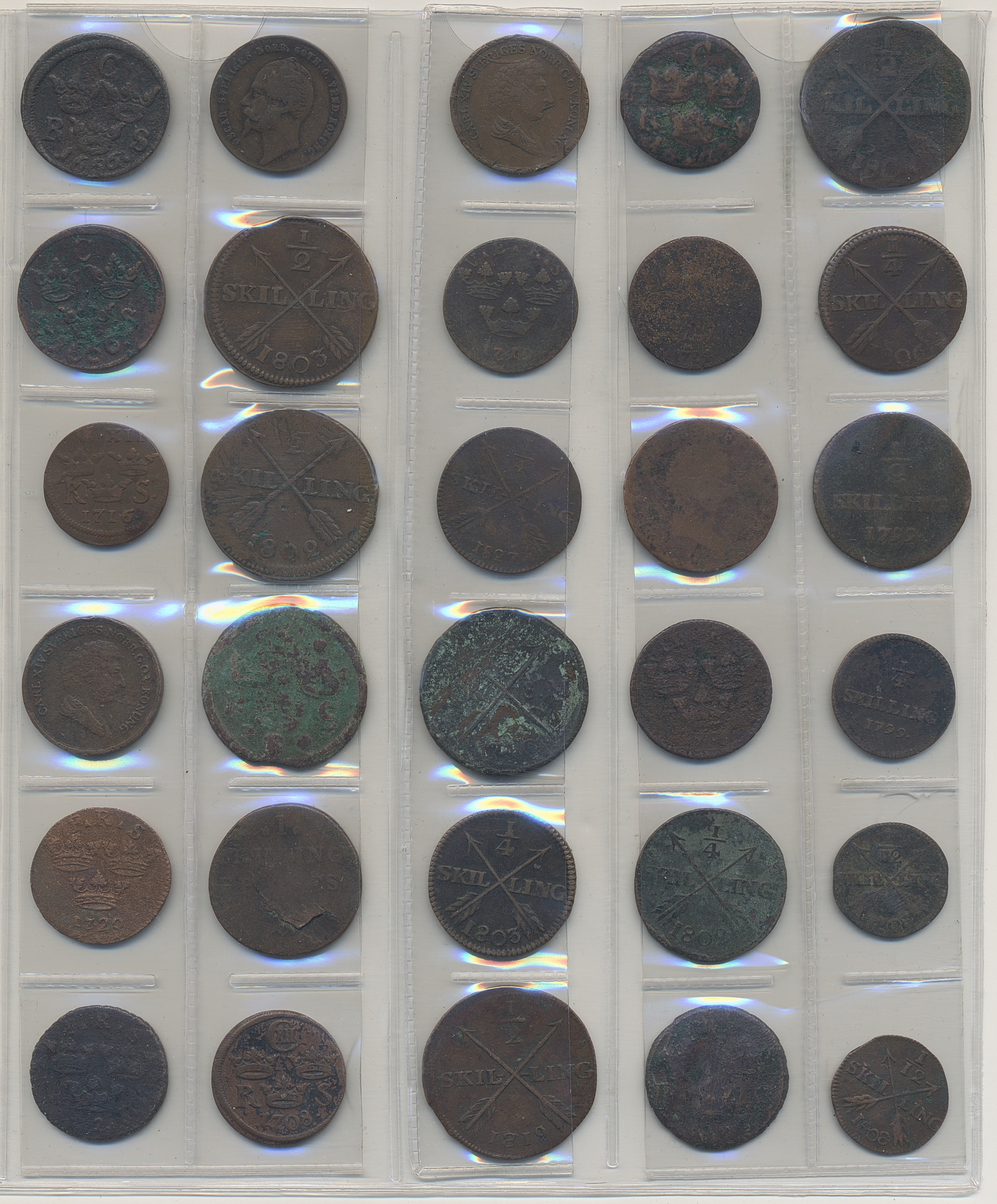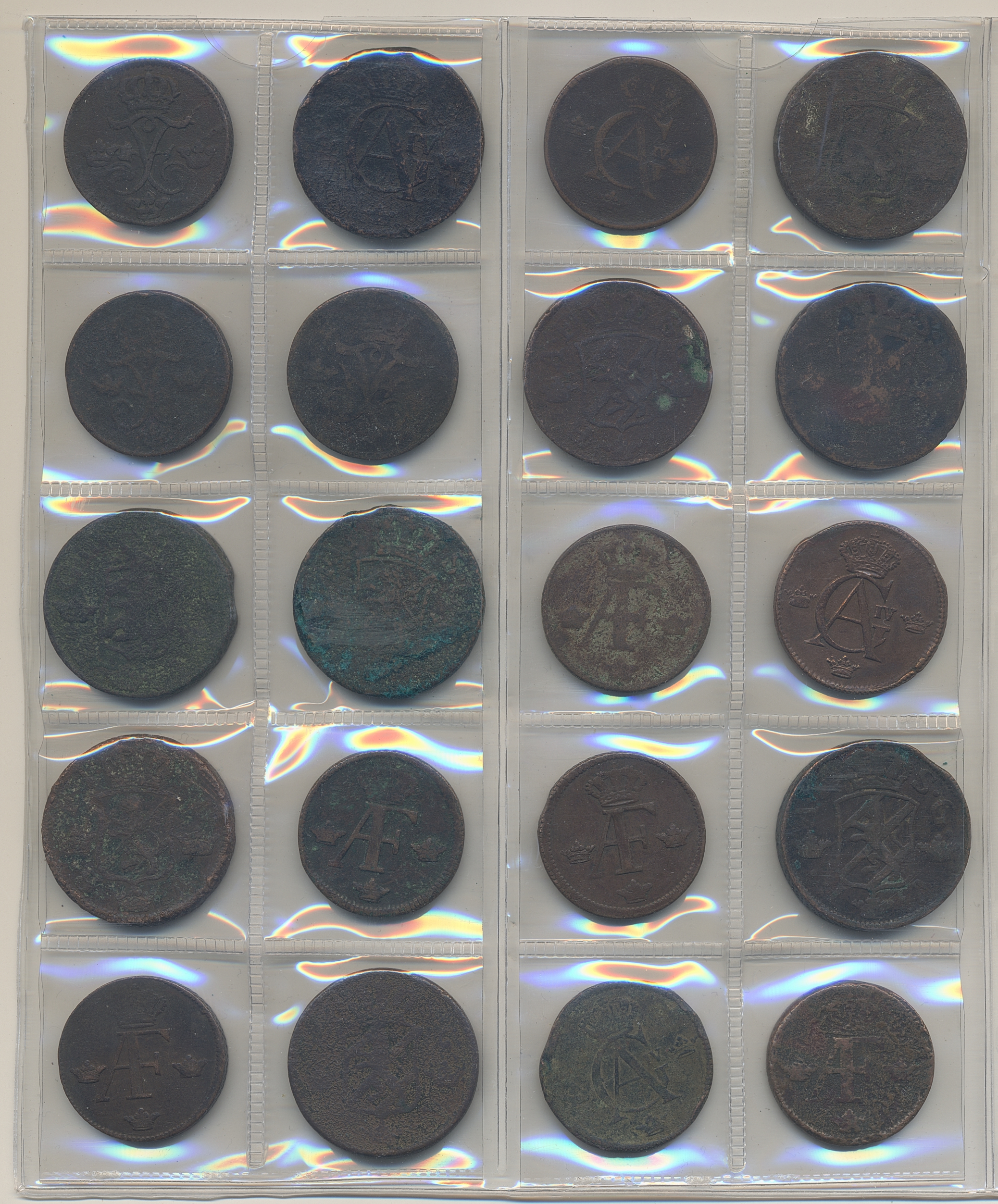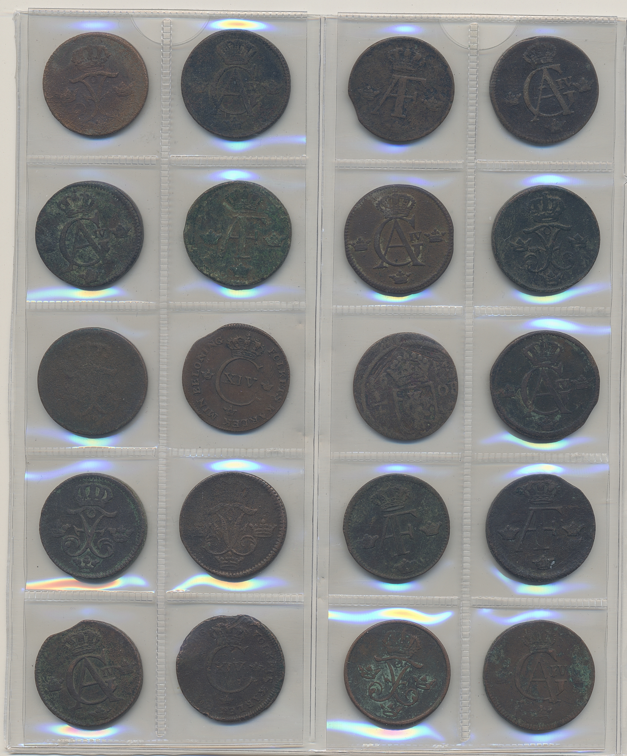 Coins, Sweden. Collection of older Swedish copper coins in album. In total 140 pcs. Please inspect!