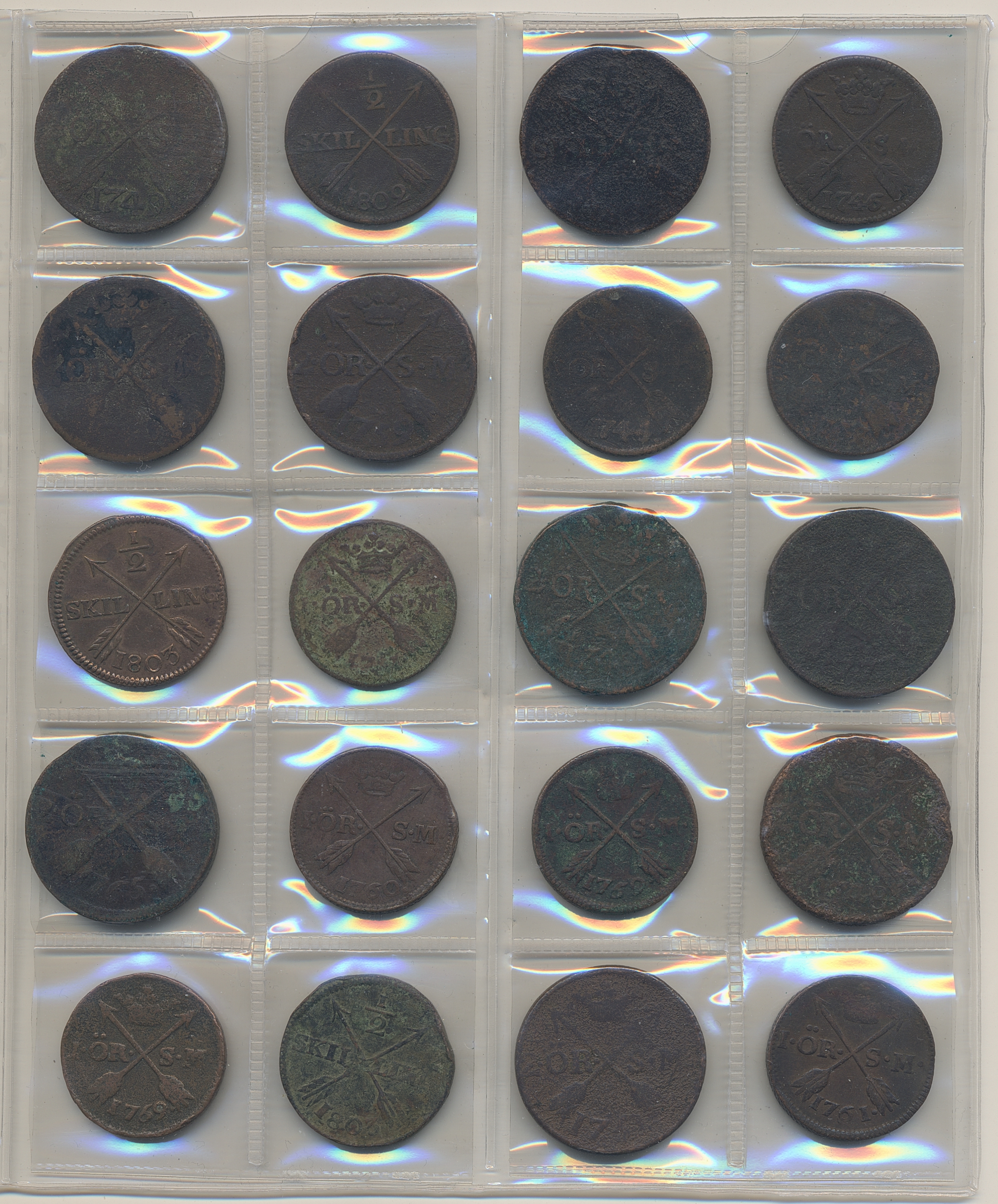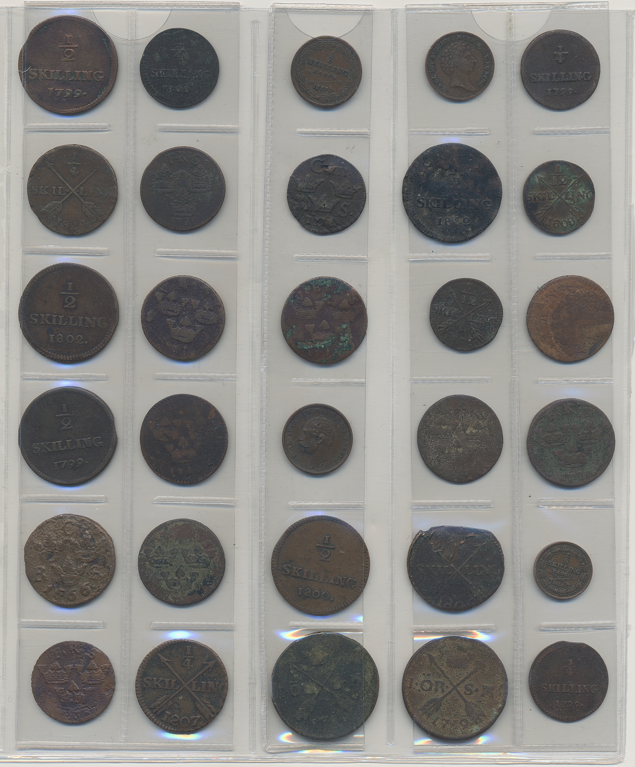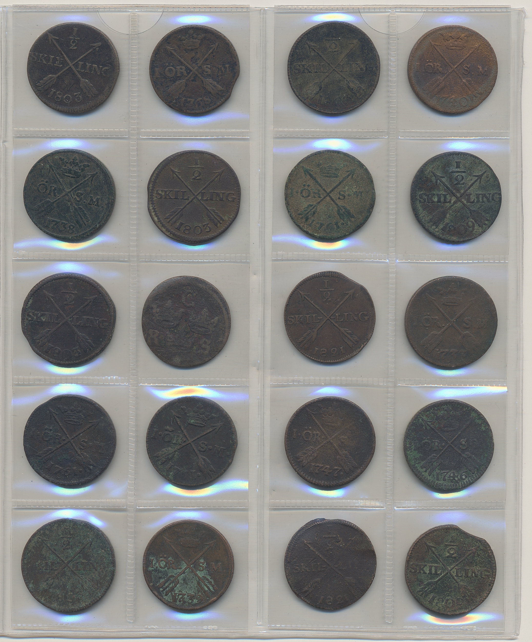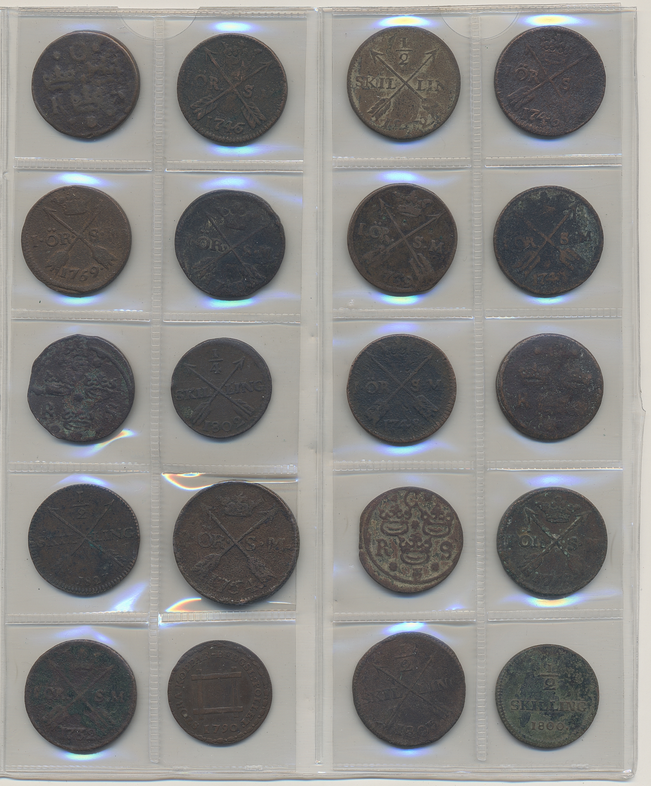 Coins, Sweden. Collection of older Swedish copper coins in album. In total 140 pcs. Please inspect!