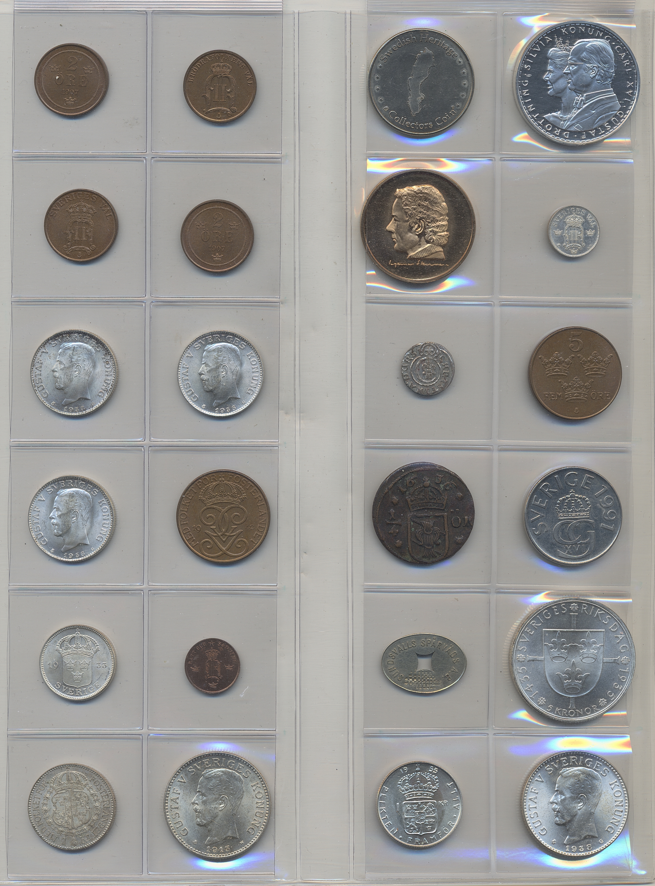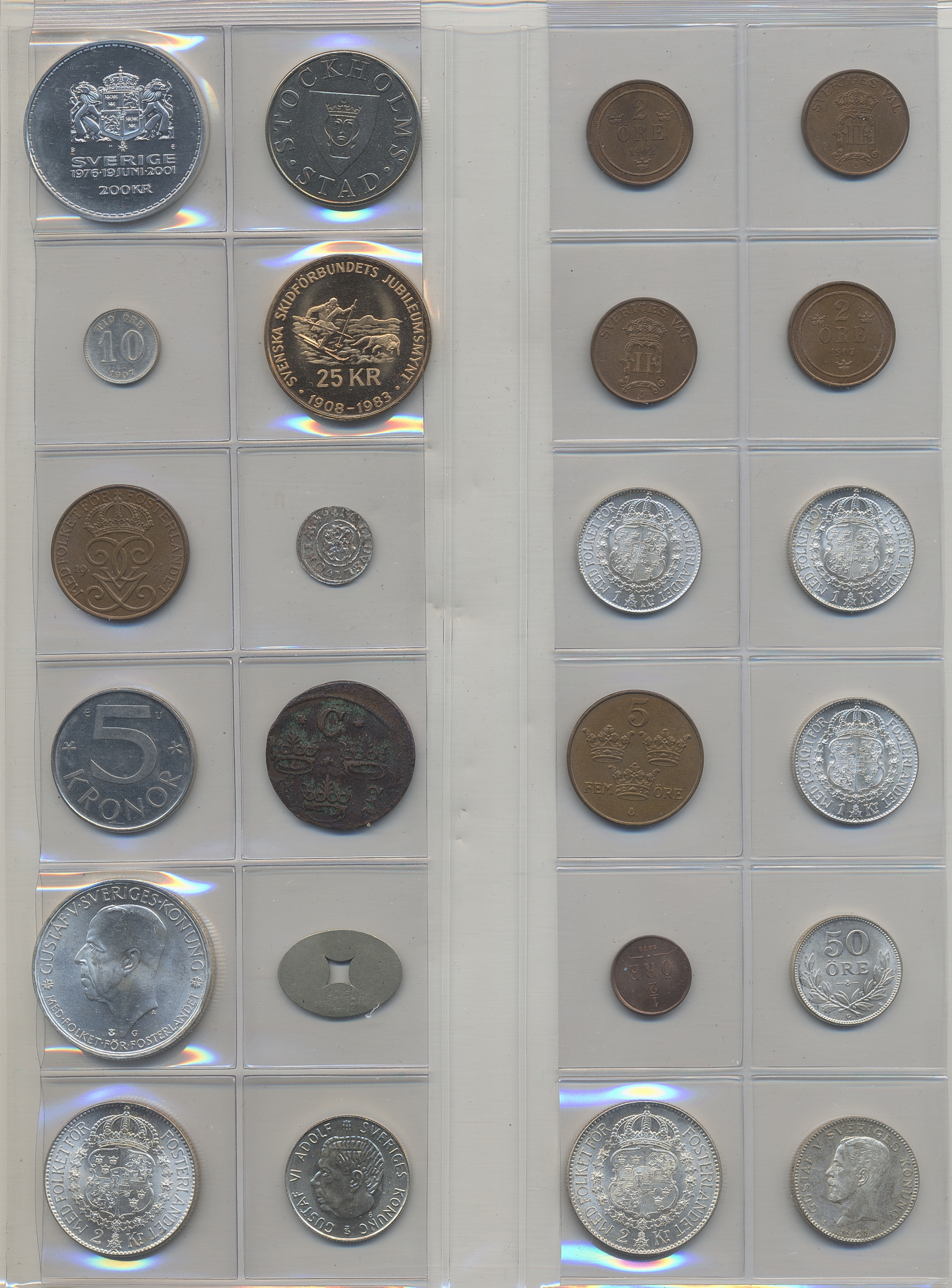 Coins, Sweden. 24 coins in silver and bronze, 1636–2001, mixed but very high quality.