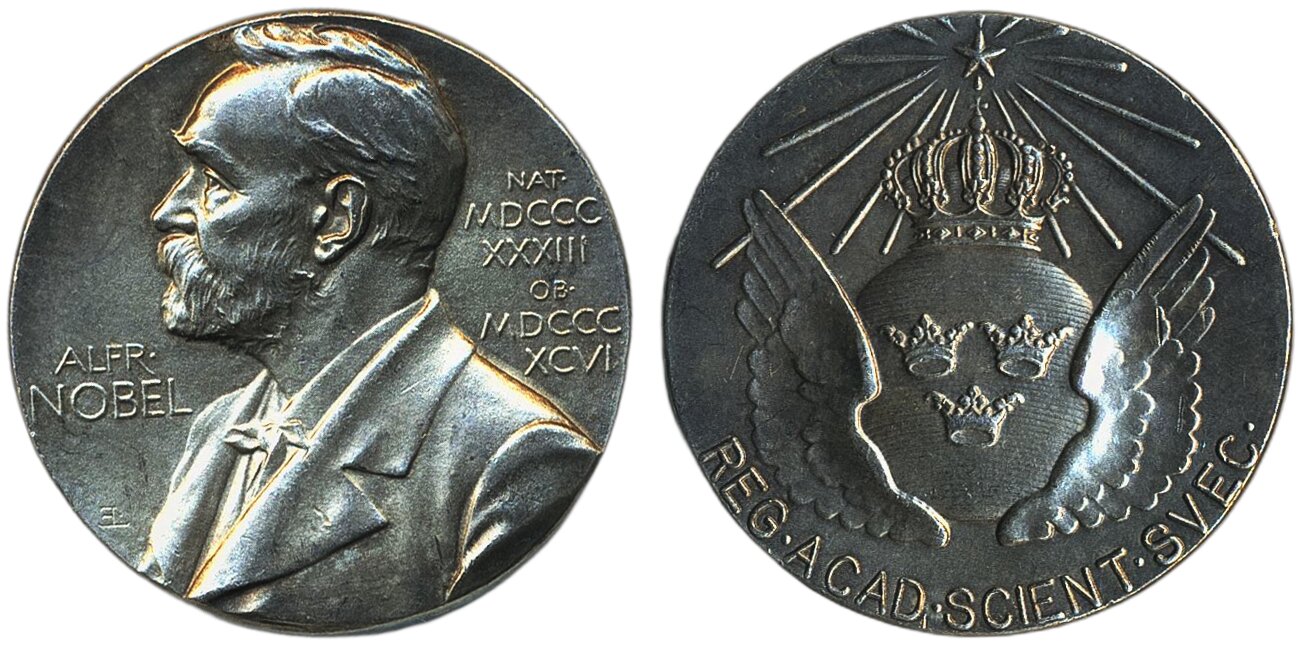 Medals, non-regal, Sweden. Alfred Nobel (1833–1896). 13.26 g. Nobel nominating committee for physics or chemistry silver medal, H10 date, 26 mm. By E. Lindberg. 01.