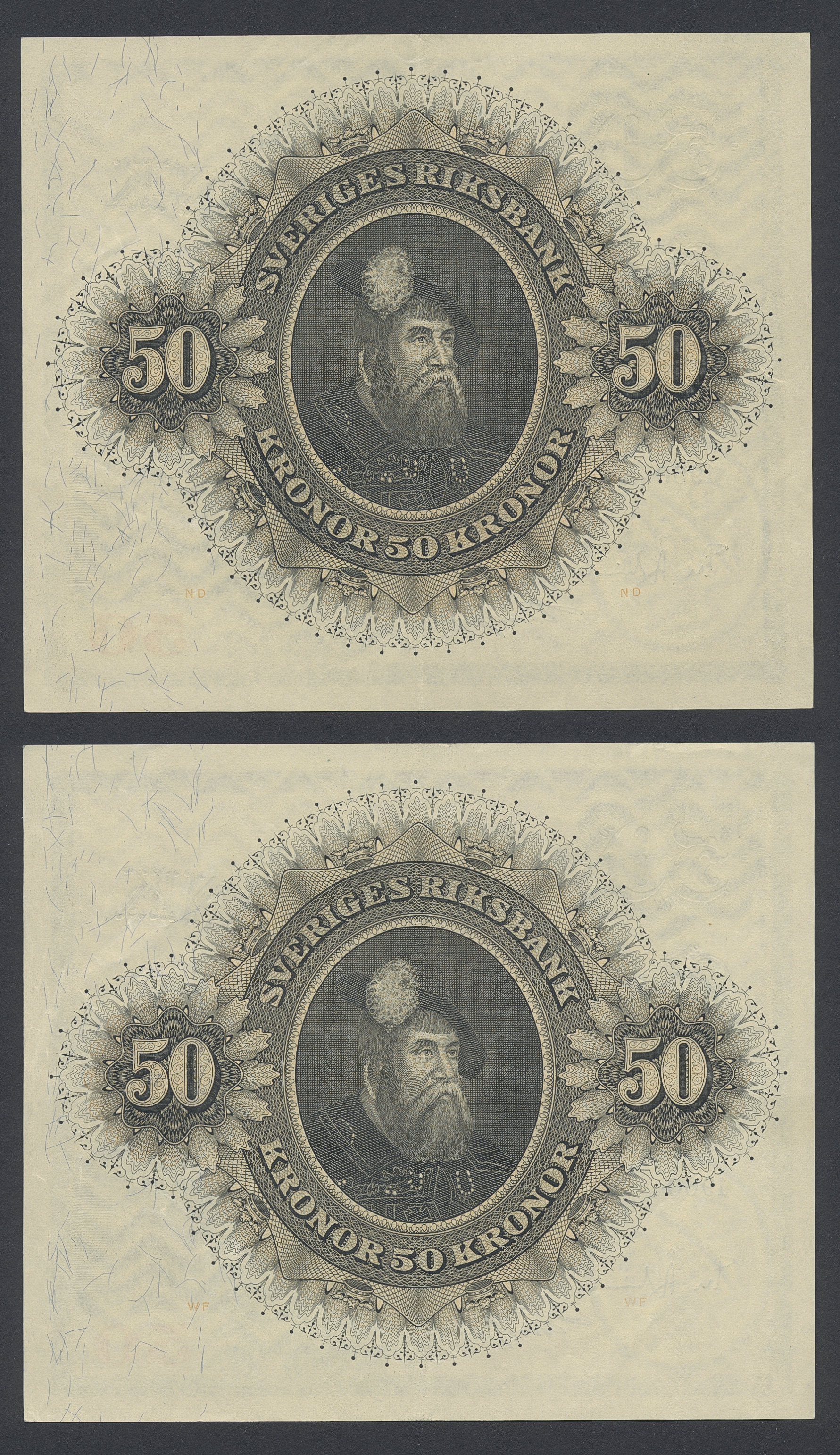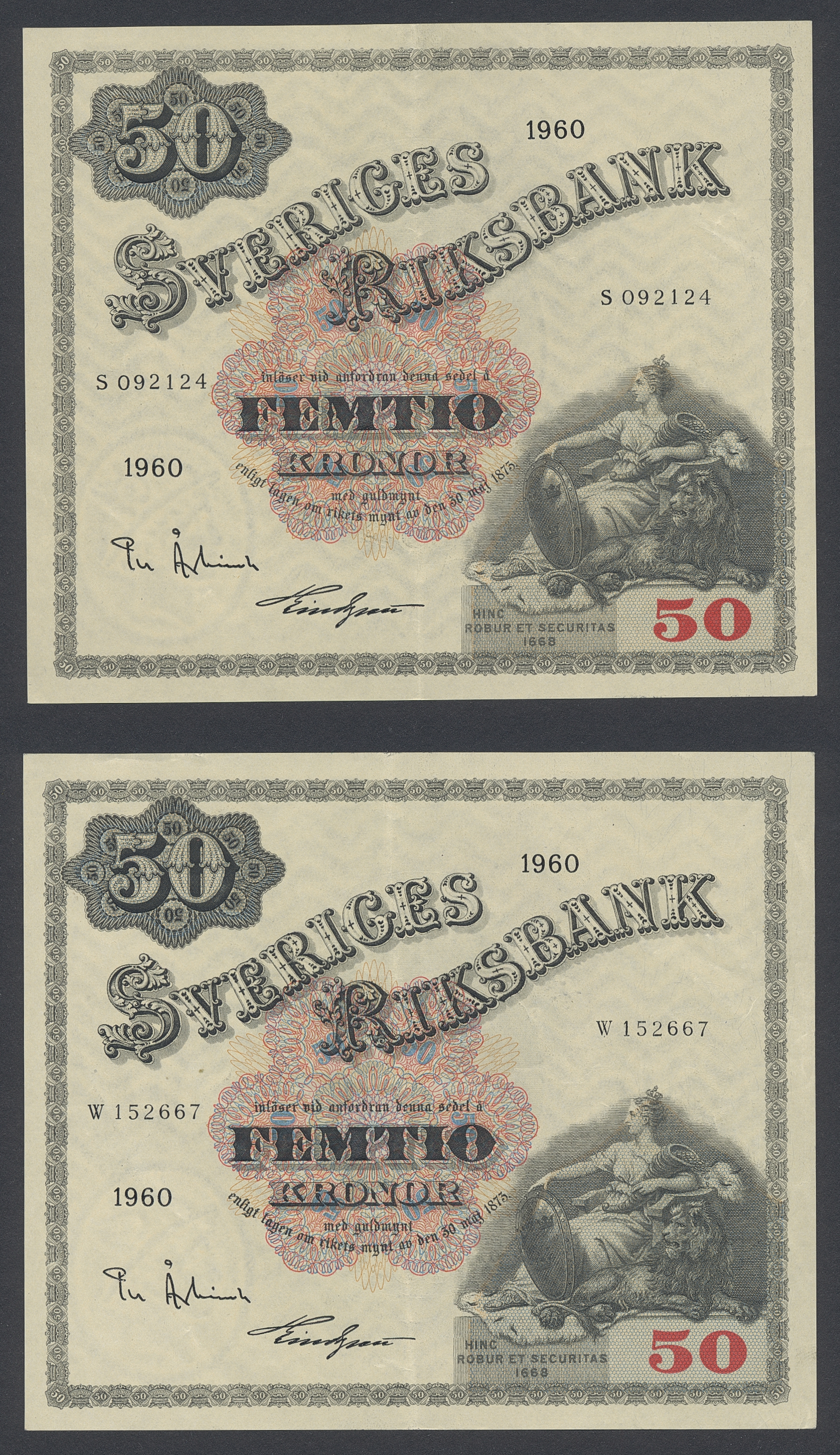 Banknotes, Sweden. 50 kronor 1960. Two pcs with centerfold.