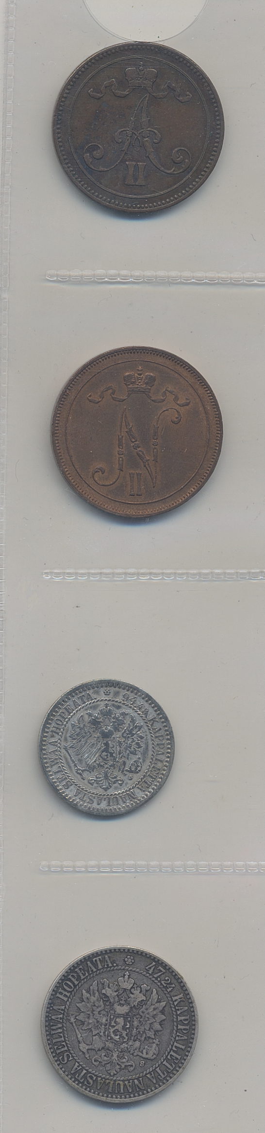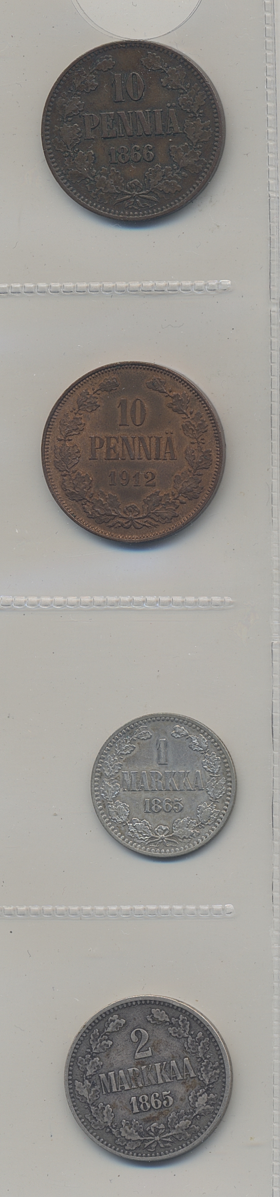 Coins, Finland. Small group of four better grade coins. Please inspect! 1+-01/0.