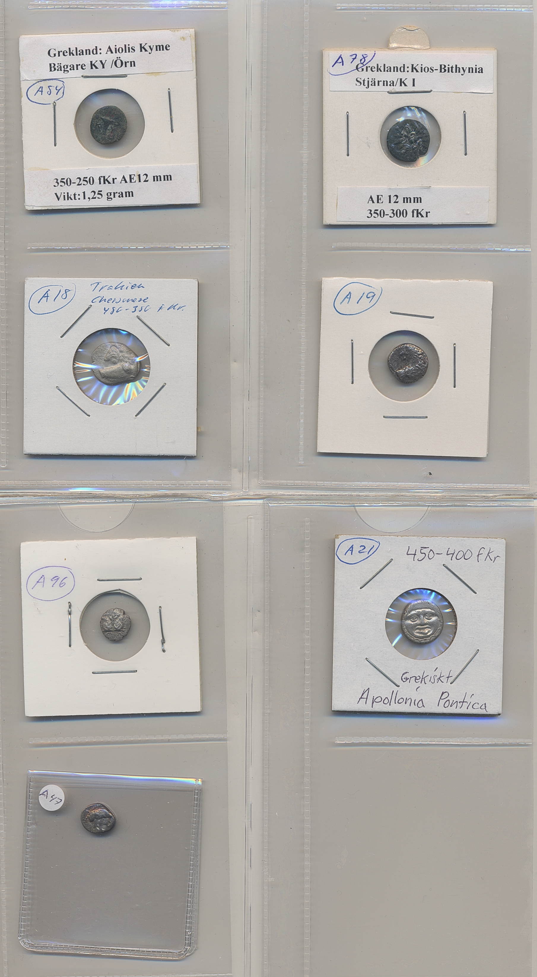 Coins, Ancient, Greek coins. Lot. Seven coins from different areas. The entire lot is presented at www.philea.se. Mixed quality.