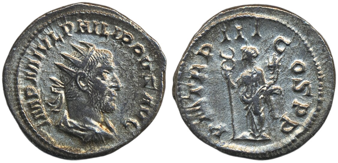 Coins, Ancient, Roman Empire. Philip I (244–249). Antoninianus, 4.95 g. Radiate and draped bust right / Felicitas, standing left, holding caduceus and cornucopiae. RIC 3. XF.