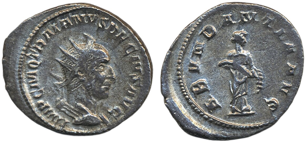 Coins, Ancient, Roman Empire. Trajan Decius (249–251). Antoninianus, 3.12 g. Radiate, draped and cuirassed bust right / Abundantia standing right pouring forth the contents of a cornucopiae. RIC10. VF.