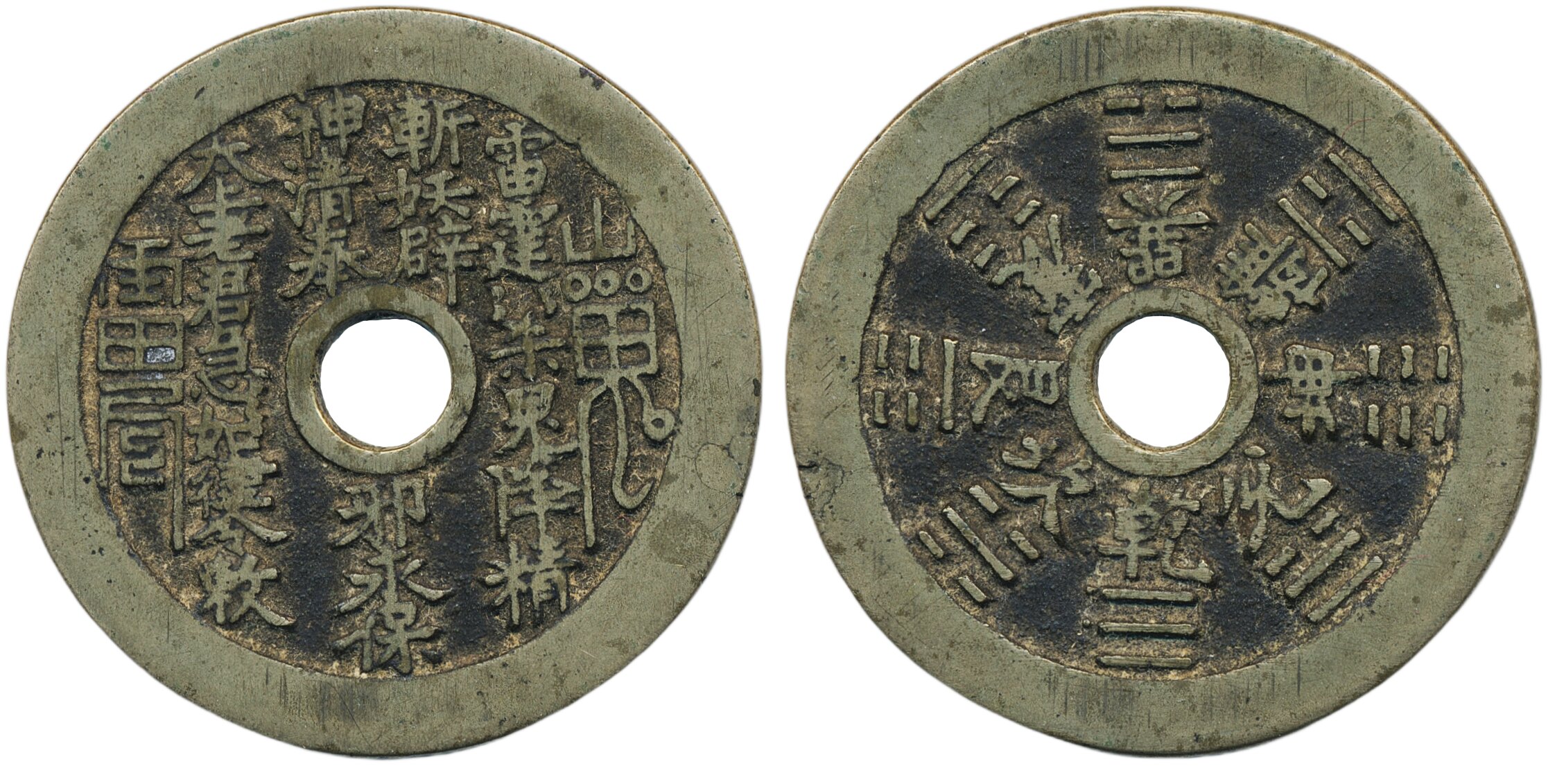Medals, regal, China, Ancient. CCH -1776, 24.36 g. 44 mm. Daoist curse charm, Qing Dynasty. Round centre hole. VF-XF.