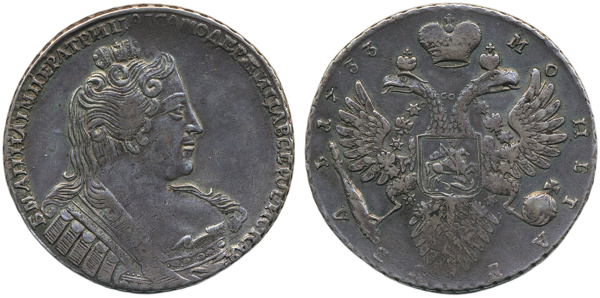 Coins, Russia. Anna, 1 rouble 1733. 25.94 g. VF.