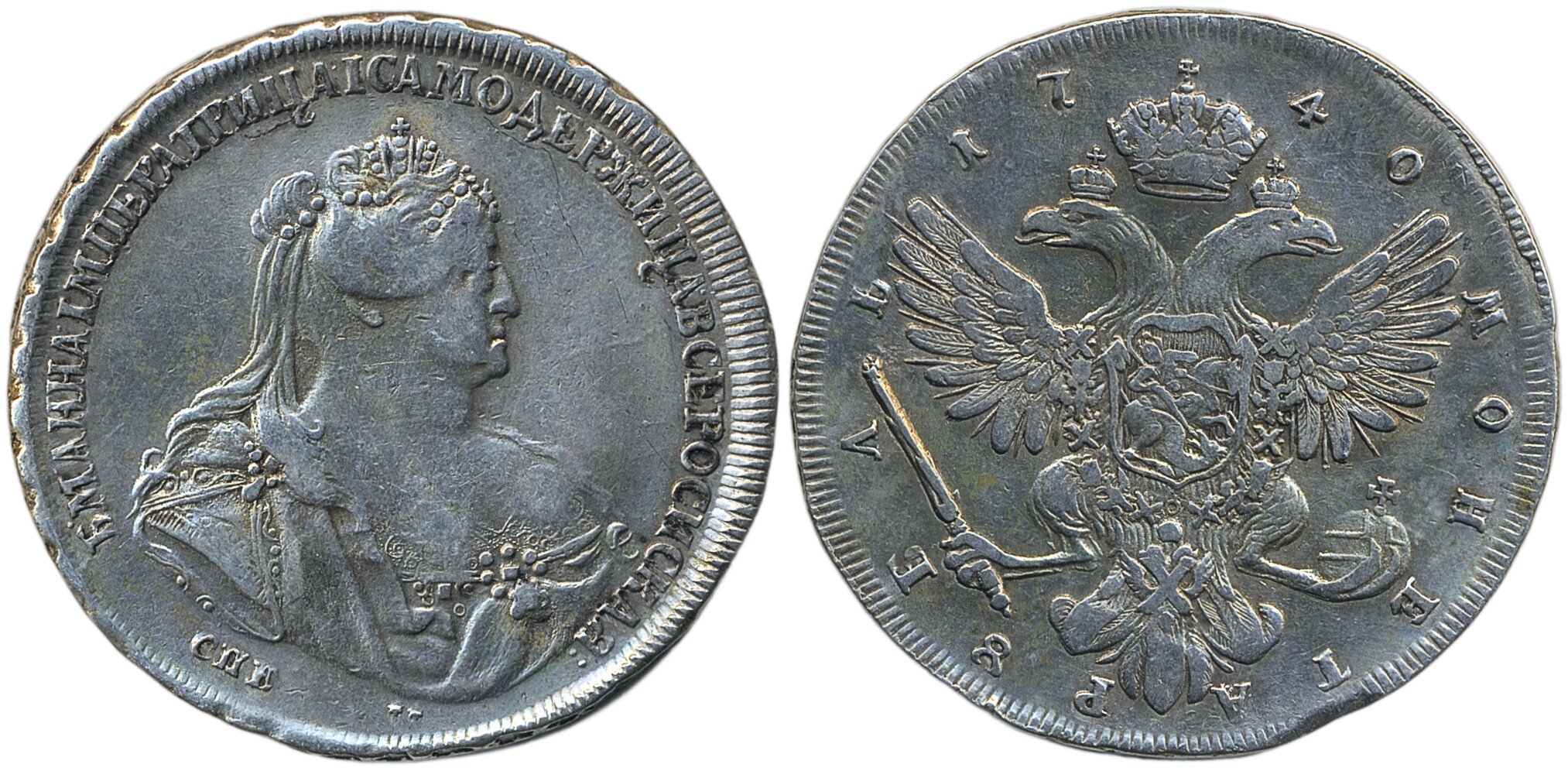 Coins, Russia. Anna, KM 203, 1 rouble 1740. 25.89 g. F.