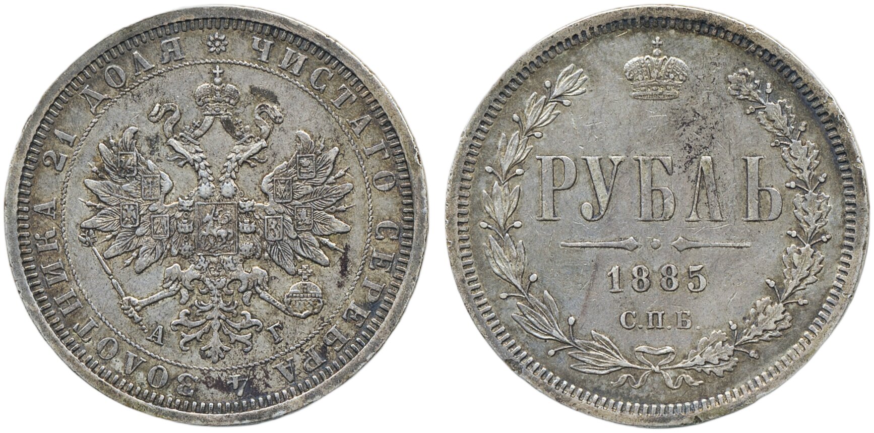 Coins, Russia. Alexander III, Bitkin 46, 1 rouble 1885. Attractive example with good toning. VF-XF.