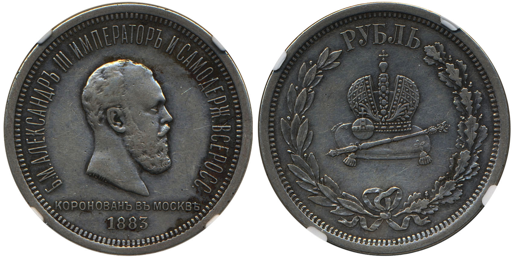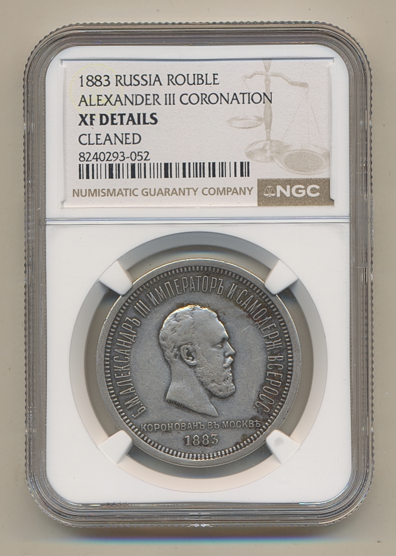 Coins, Russia. Alexander III, 1 rouble 1883. Commemorative issue to Coronation. Graded by NGC as XF cleaned. VF. See certification at NGC