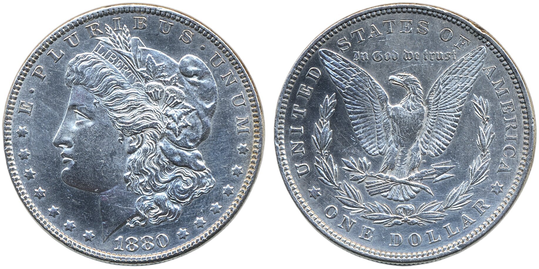 Coins, U.S.A. KM 110, 1 dollar 1880. Minor rim nick. XF.
