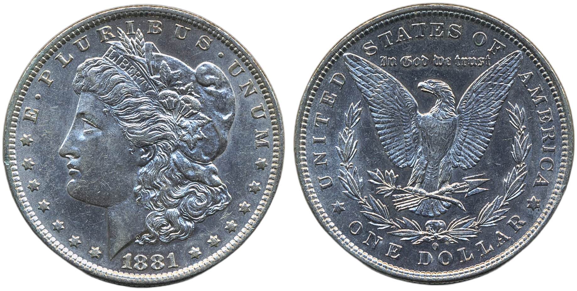 Coins, U.S.A. KM 110, 1 dollar 1881 O. XF.