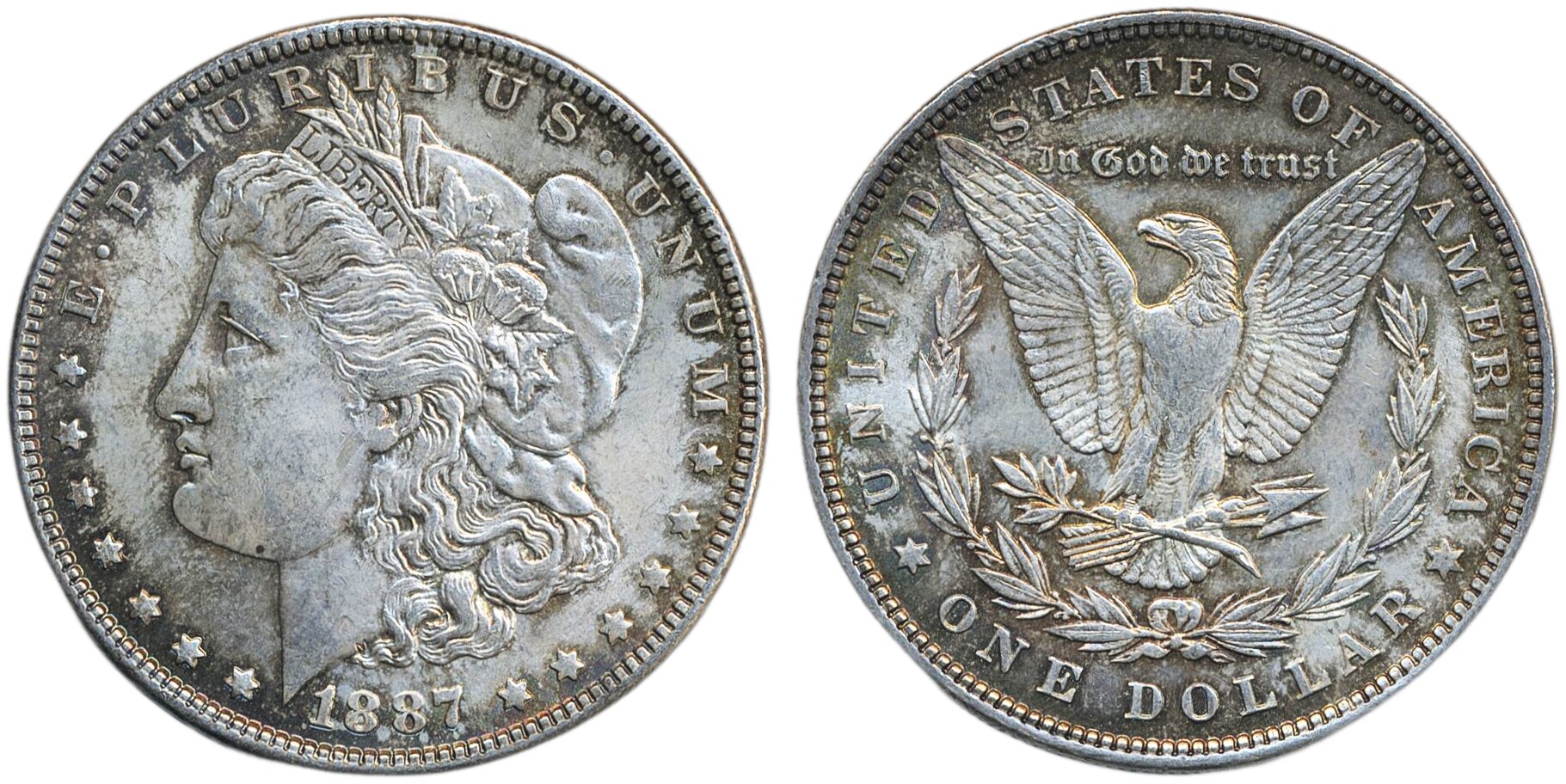 Coins, U.S.A. KM 110, 1 dollar 1887. XF-UNC.