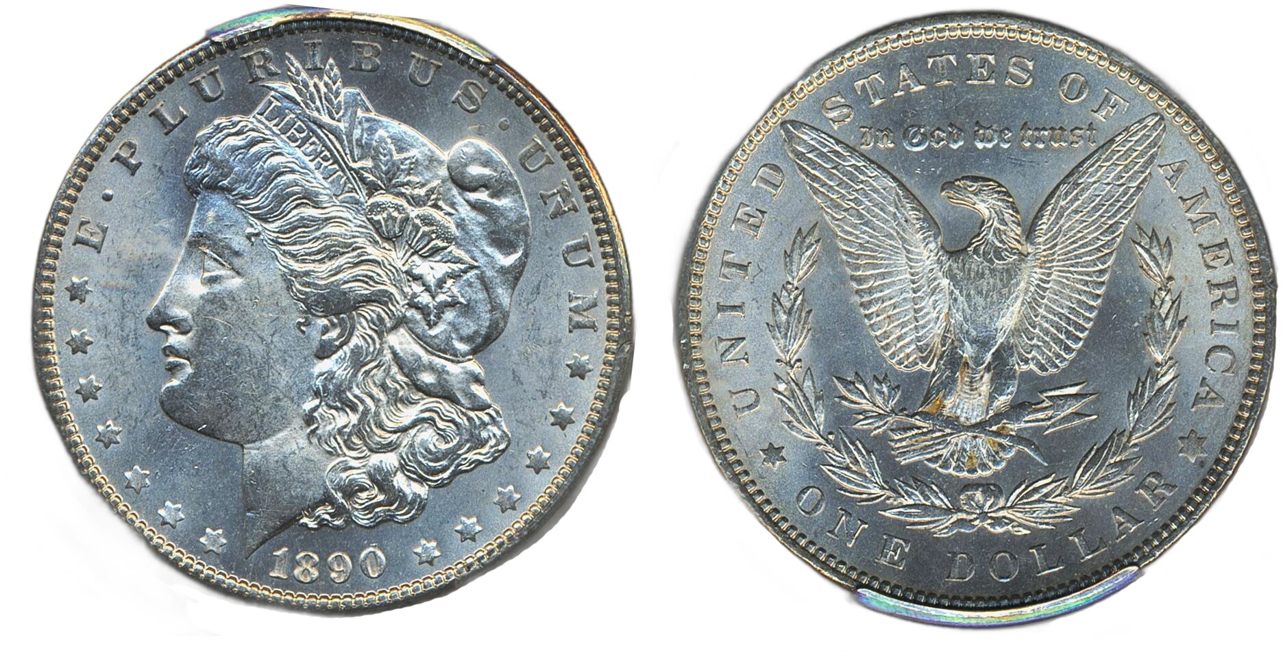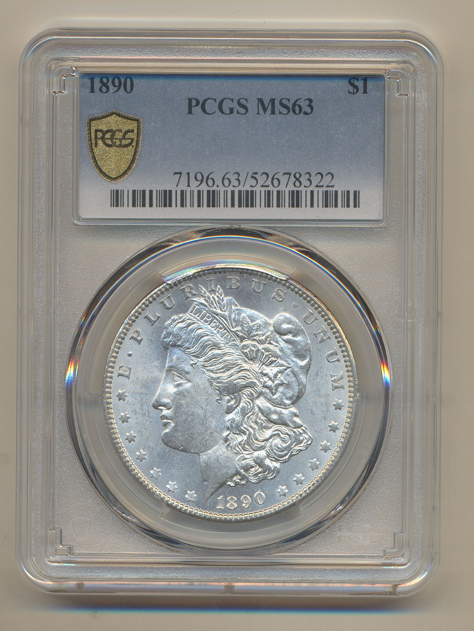 Coins, U.S.A. KM 110, 1 dollar 1890. Graded by PCGS as MS63. XF-UNC. See certification at PCGS