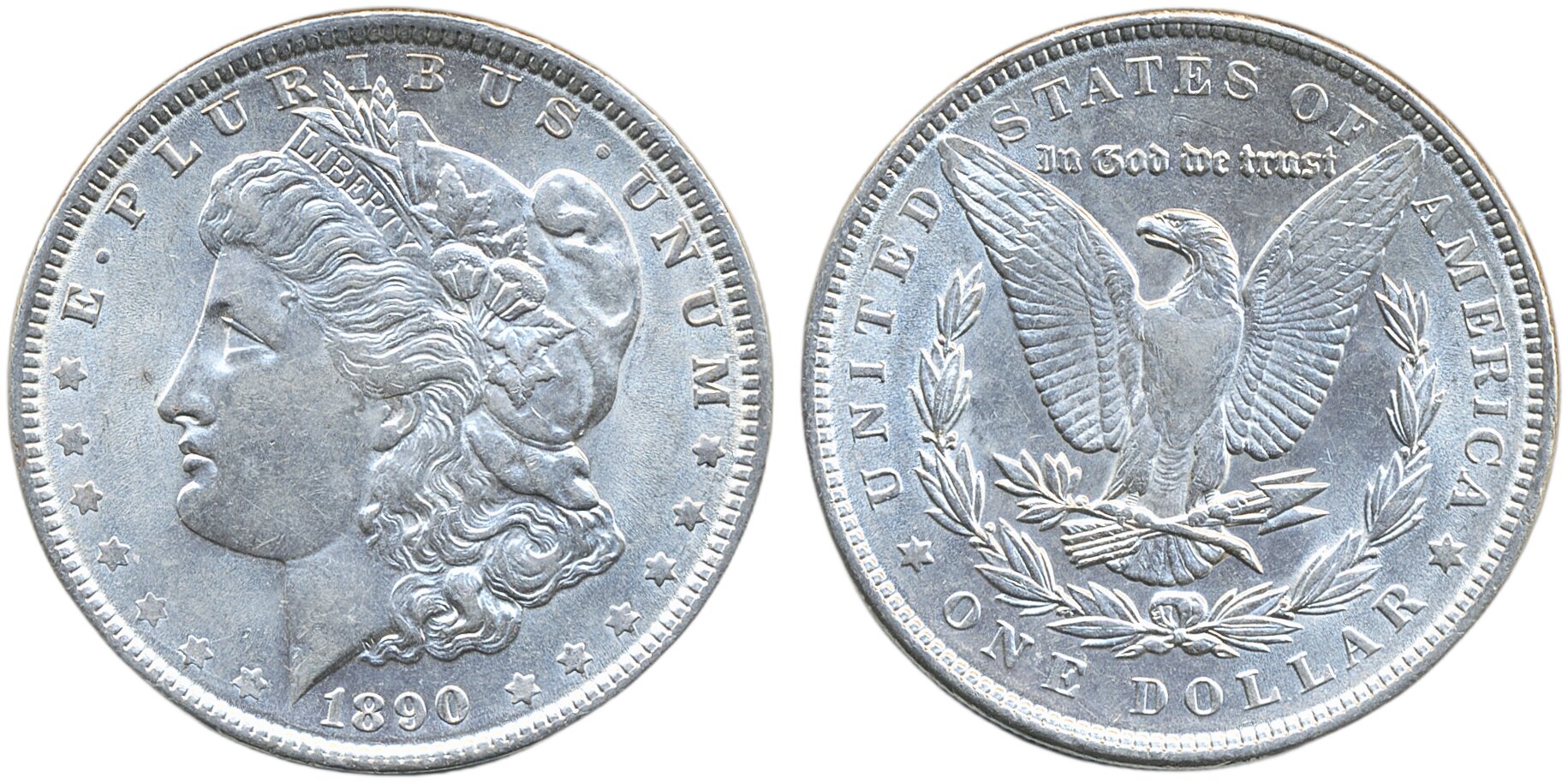 Coins, U.S.A. KM 110, 1 dollar 1890. Beautiful example with rainbow toning. XF-UNC.