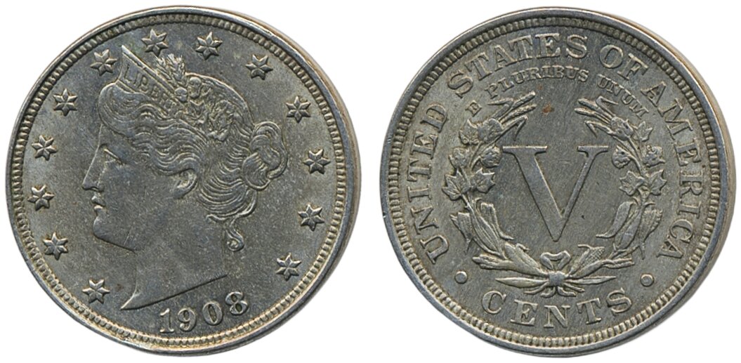 Coins, U.S.A. KM 112, 5 cents 1908. XF-UNC.