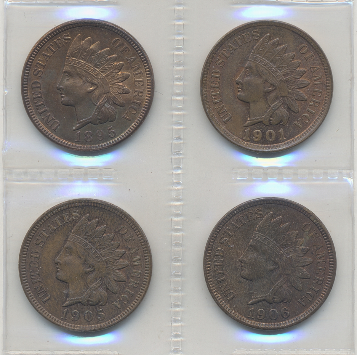 Coins, U.S.A. Collection of indian 1 cents in high quality with some red luster. 1895–1906. In total 4 pcs. Please inspect!