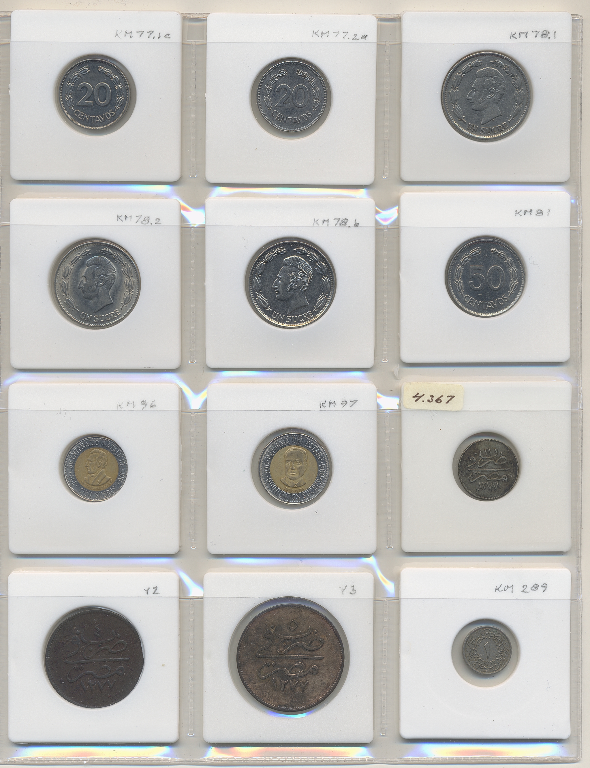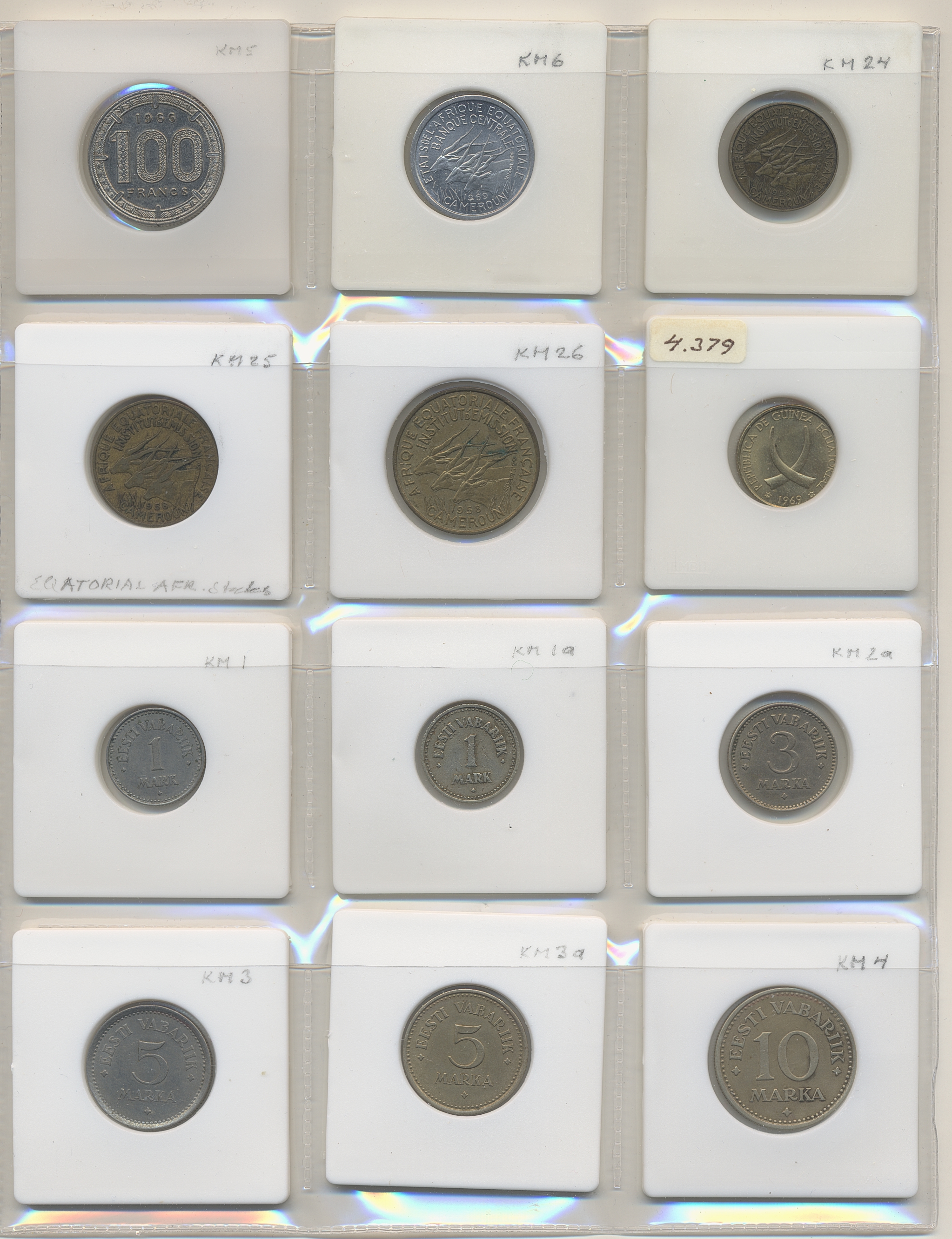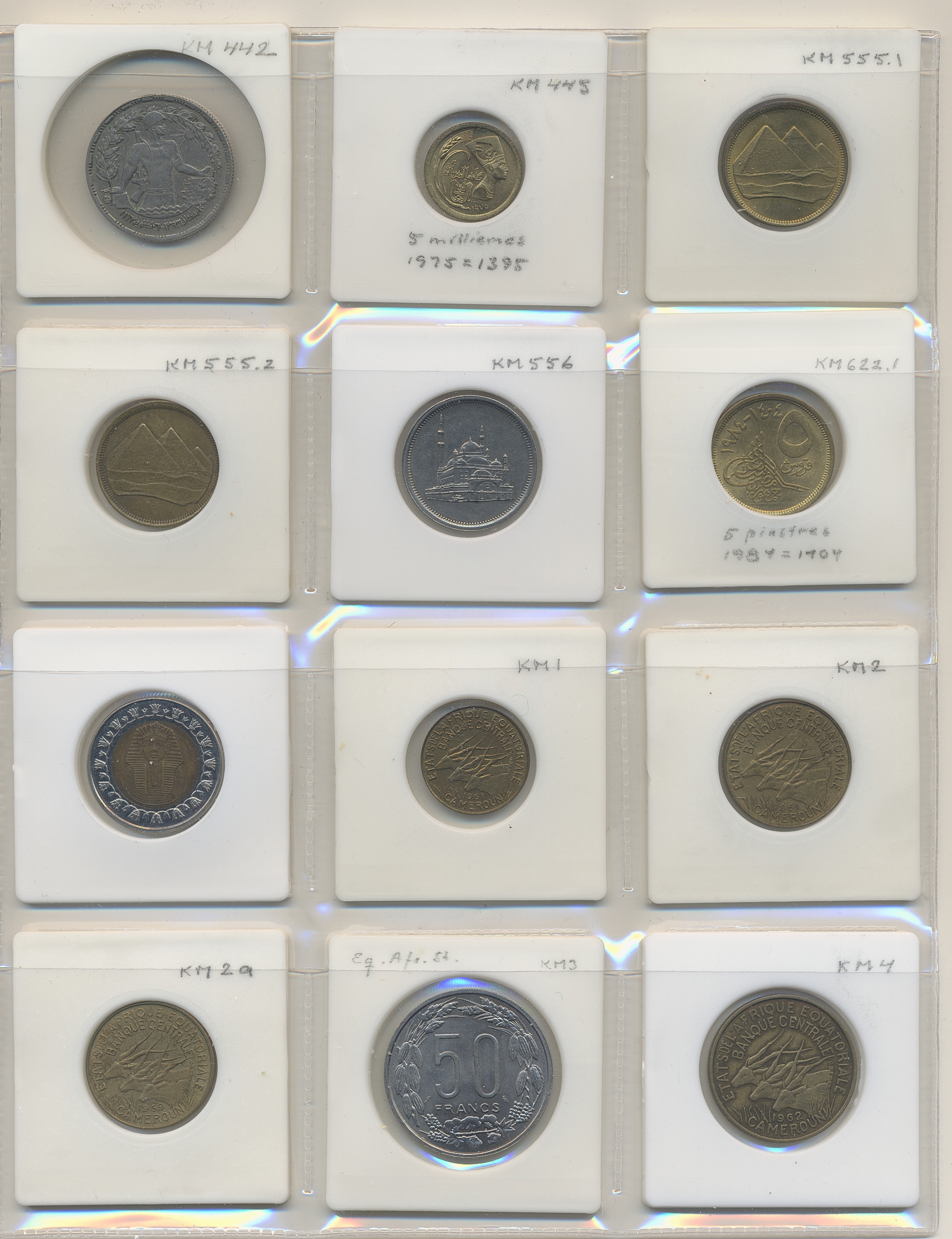 Coins, ALL WORLD. Collection of coins in album, including East Africa, Ecuador, Egypt, Cameroon, Estonia. In total 144 pcs. Please inspect!