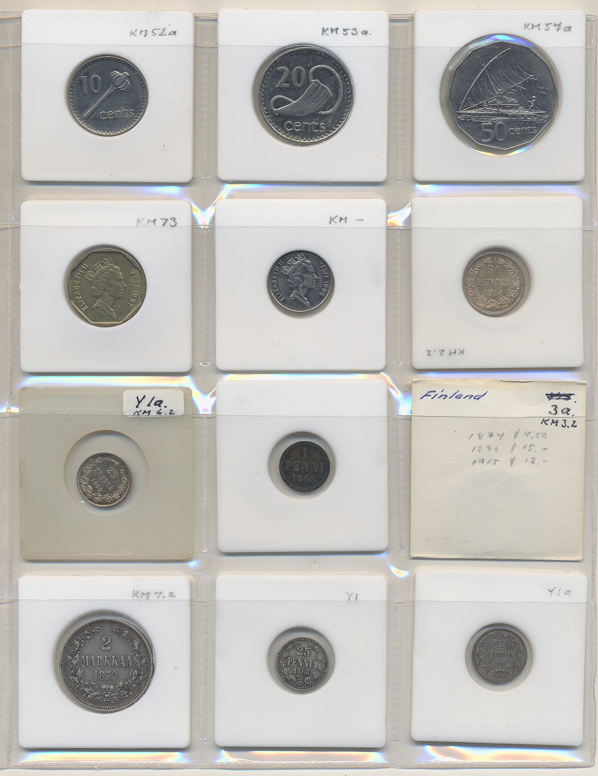 Coins, ALL WORLD. Collection of coins in album, including Estonia, Eritrea, Fiji, Finland, In total 144 pcs. Please inspect!