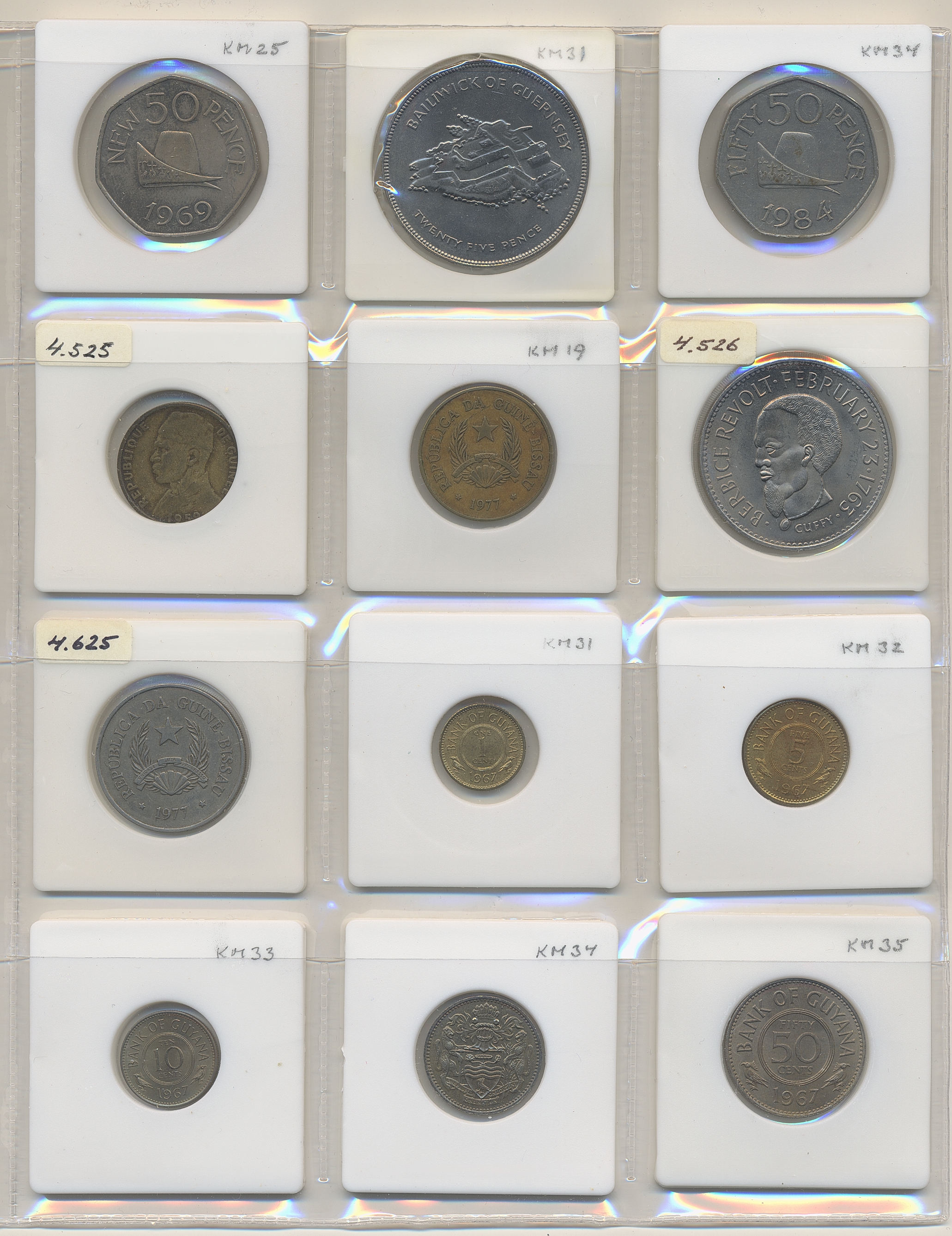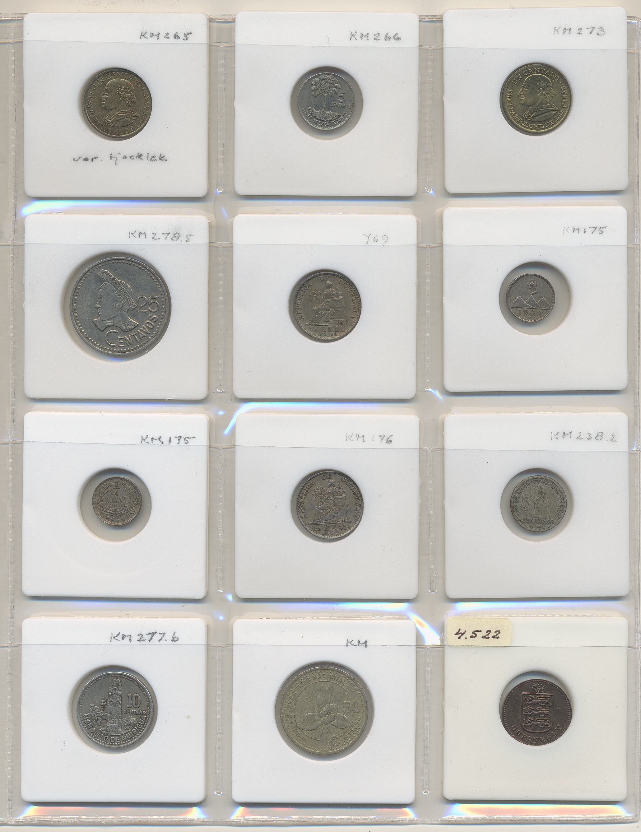 Coins, ALL WORLD. Collection of coins in album, including Guatemala, Guernsey, Guyana, Haiti, Honduras, Hong Kong, Indo-China. In total 144 pcs. Please inspect!