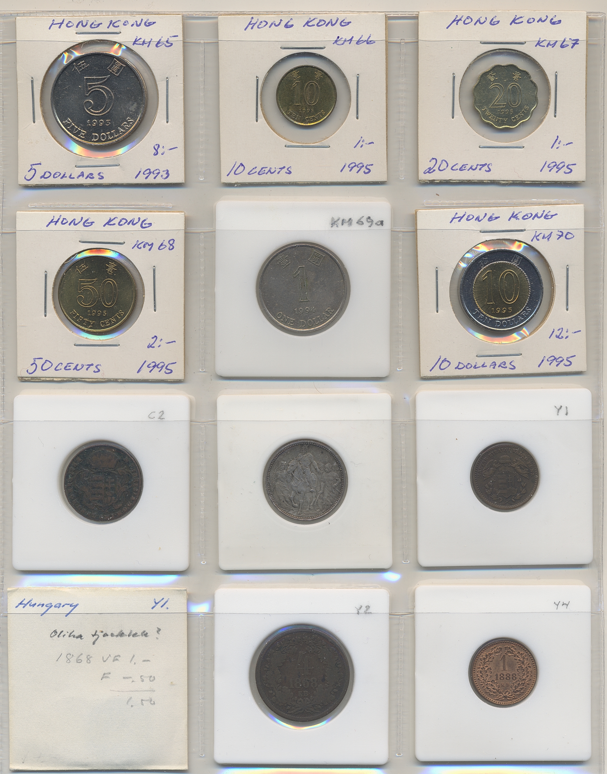 Coins, ALL WORLD. Collection of coins in album, including Hong kong, Hungary, Iceland. In total 144 pcs. Please inspect!