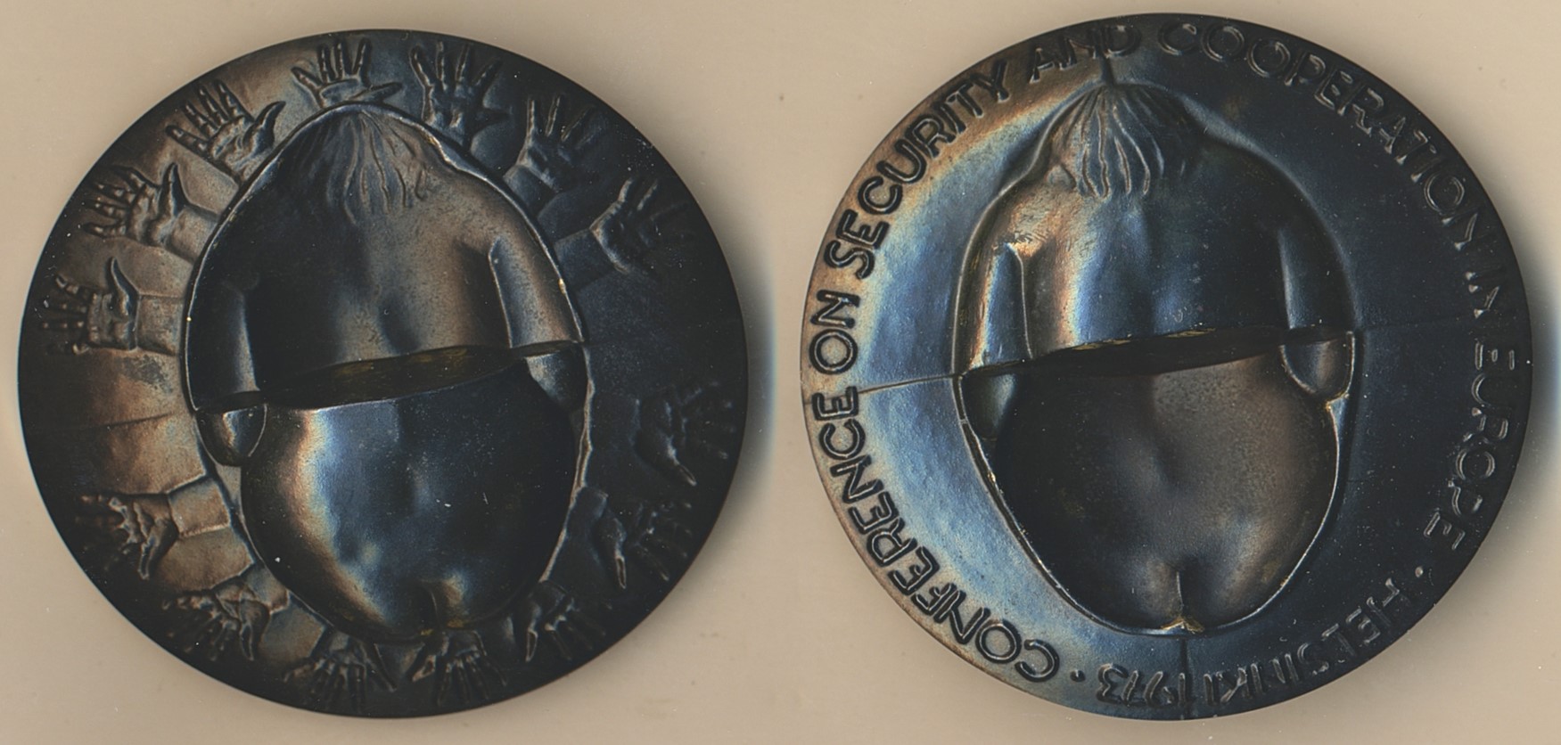 Medals, non-regal, Finland. Medal in bronze, 655 g. in two parts by Kauko Räsänen 1973 for the conference on Security and Cooperation in Europe, Helsinki 1973. Number 0060 of 2000. XF-UNC.