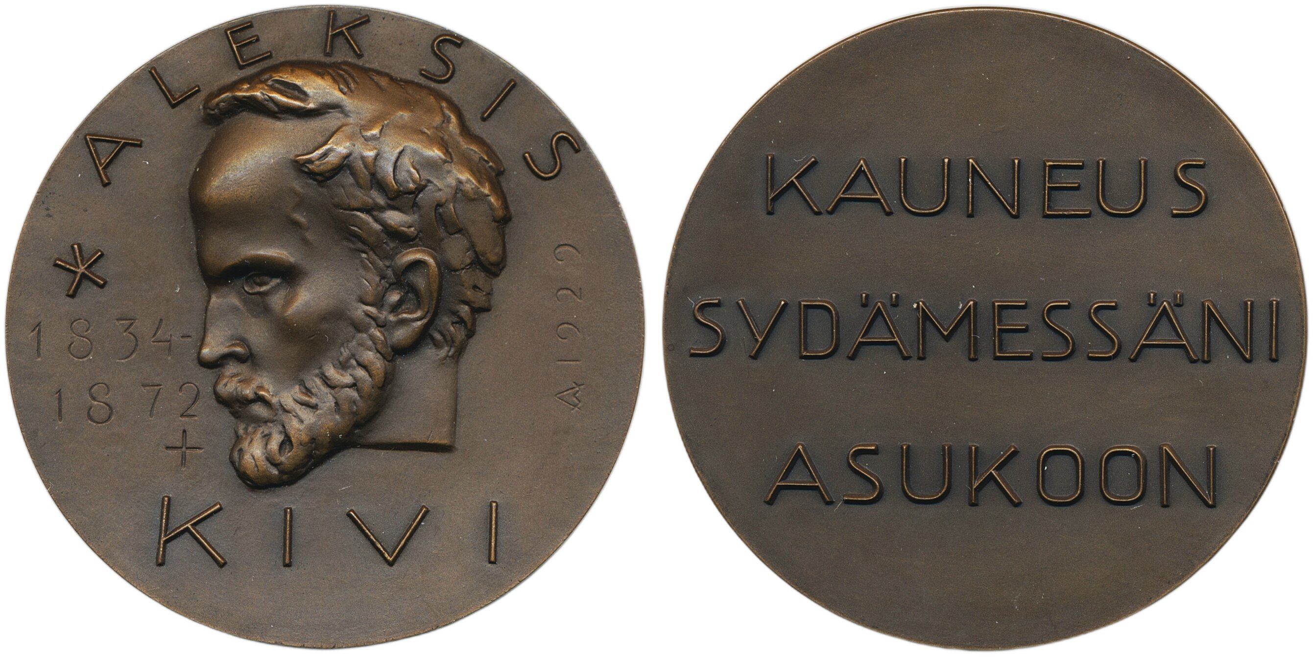 Medals, non-regal, Finland. Aleksis Kivi (1834–1872). Author. Bronze medal, 55 mm, 79 g., by Väinö Aaltonen. Ref. Boström I: 126:II. 01/0.