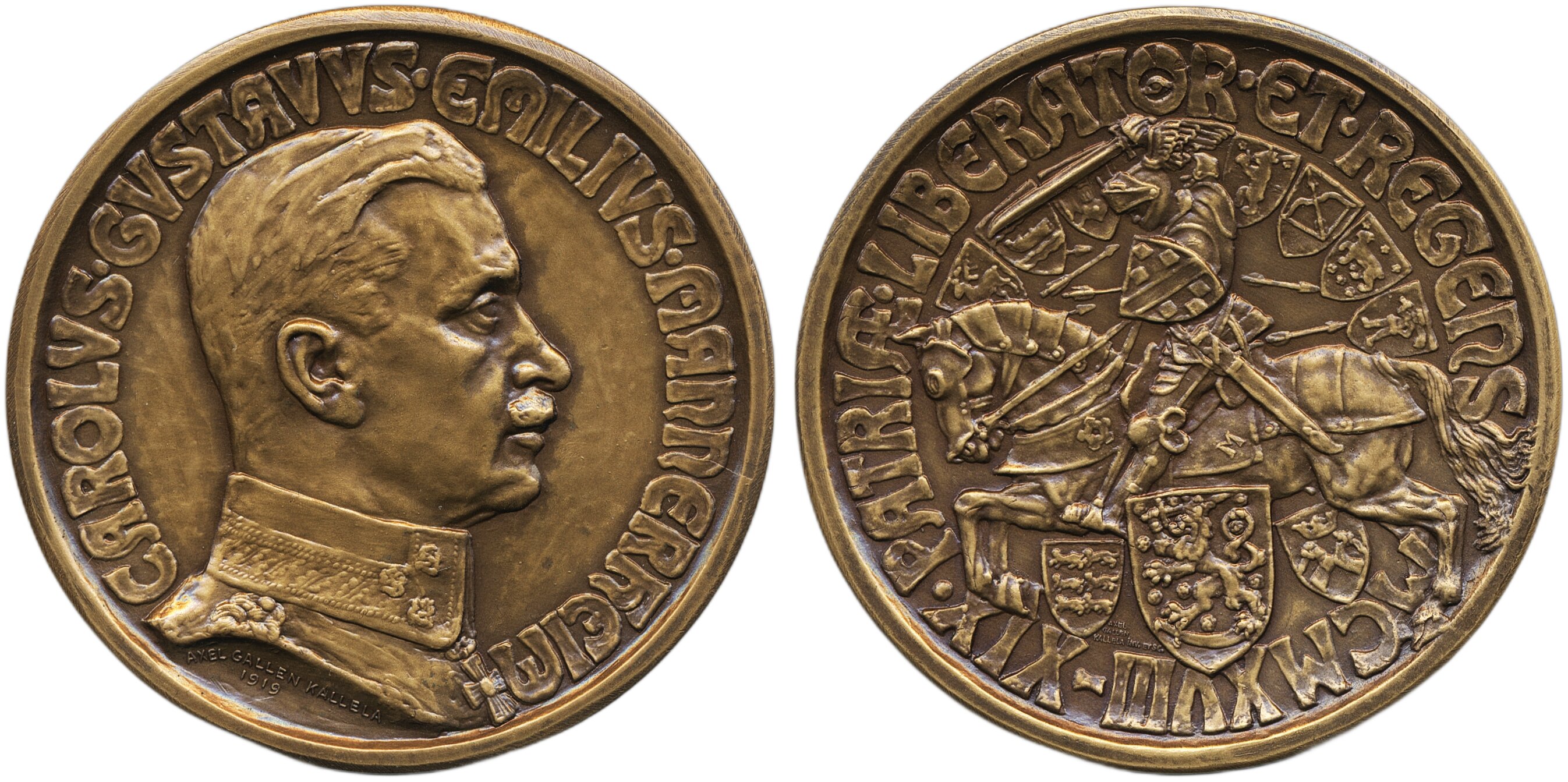 Medals, non-regal, Finland. Carl Gustaf Mannerheim (1867–1951). President of Finland. Bronze medal, 55 mm, 68 g., by Akseli Gallen-Kallela. Ref. Boström I: 158:II. 01/0.