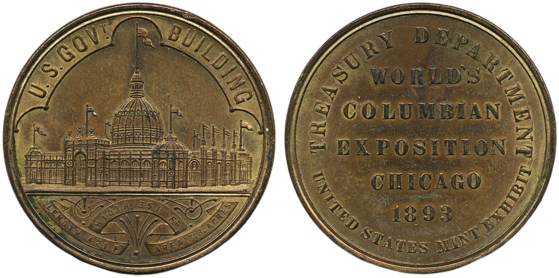 Medals, non-regal, U.S.A. 'WORLD'S COLUMBIAN EXPOSITION CHICAGO 1893', US Mint exhibit. Bronze medal, 38 mm. Minor verdigris. VF-XF.