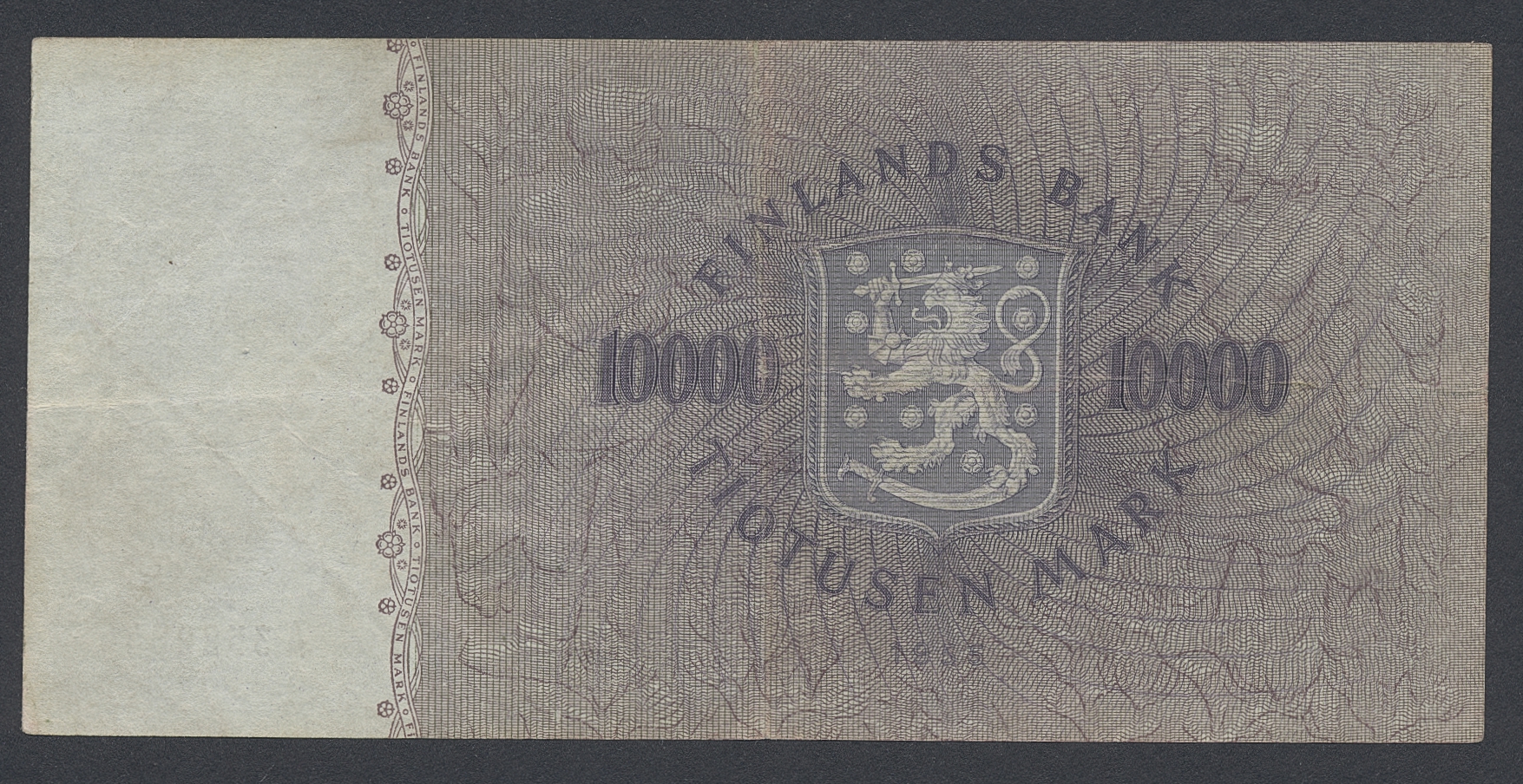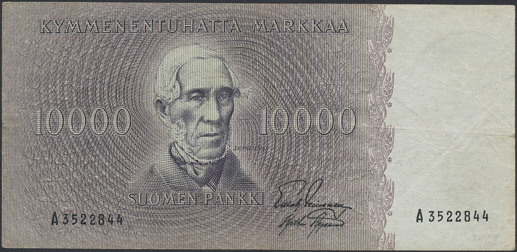 Banknotes, Finland. Pick 95a, 10000 markkaa 1955. A3522844. 1/1+.