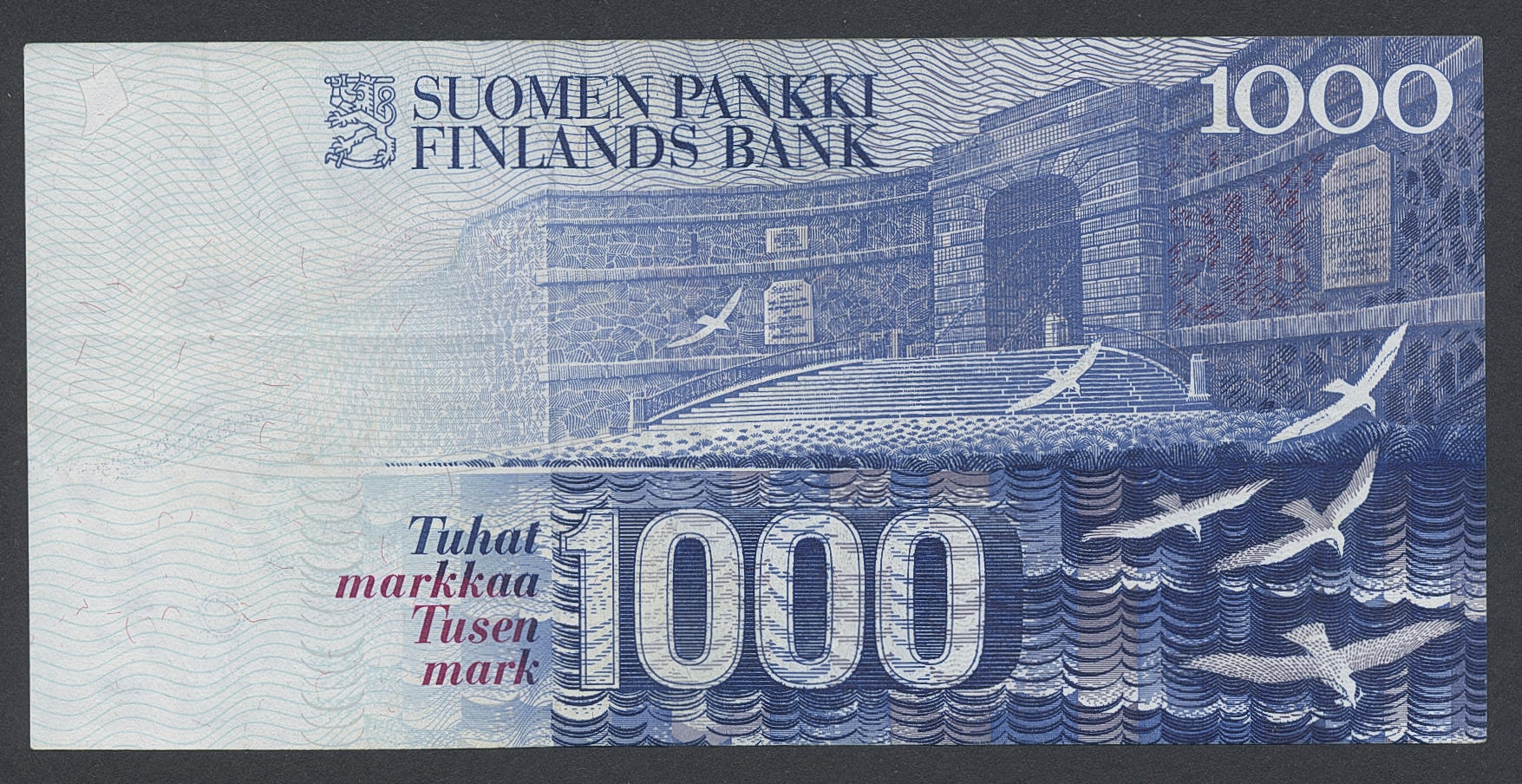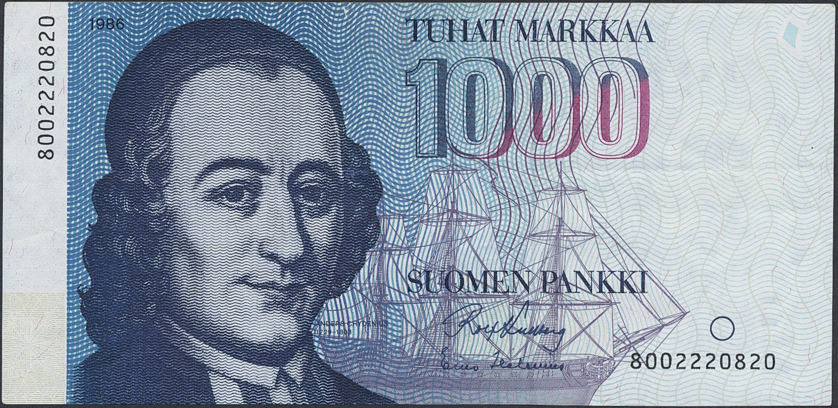 Banknotes, Finland. Pick 117a, 1000 markkaa 1986. 8002220820. 1+.