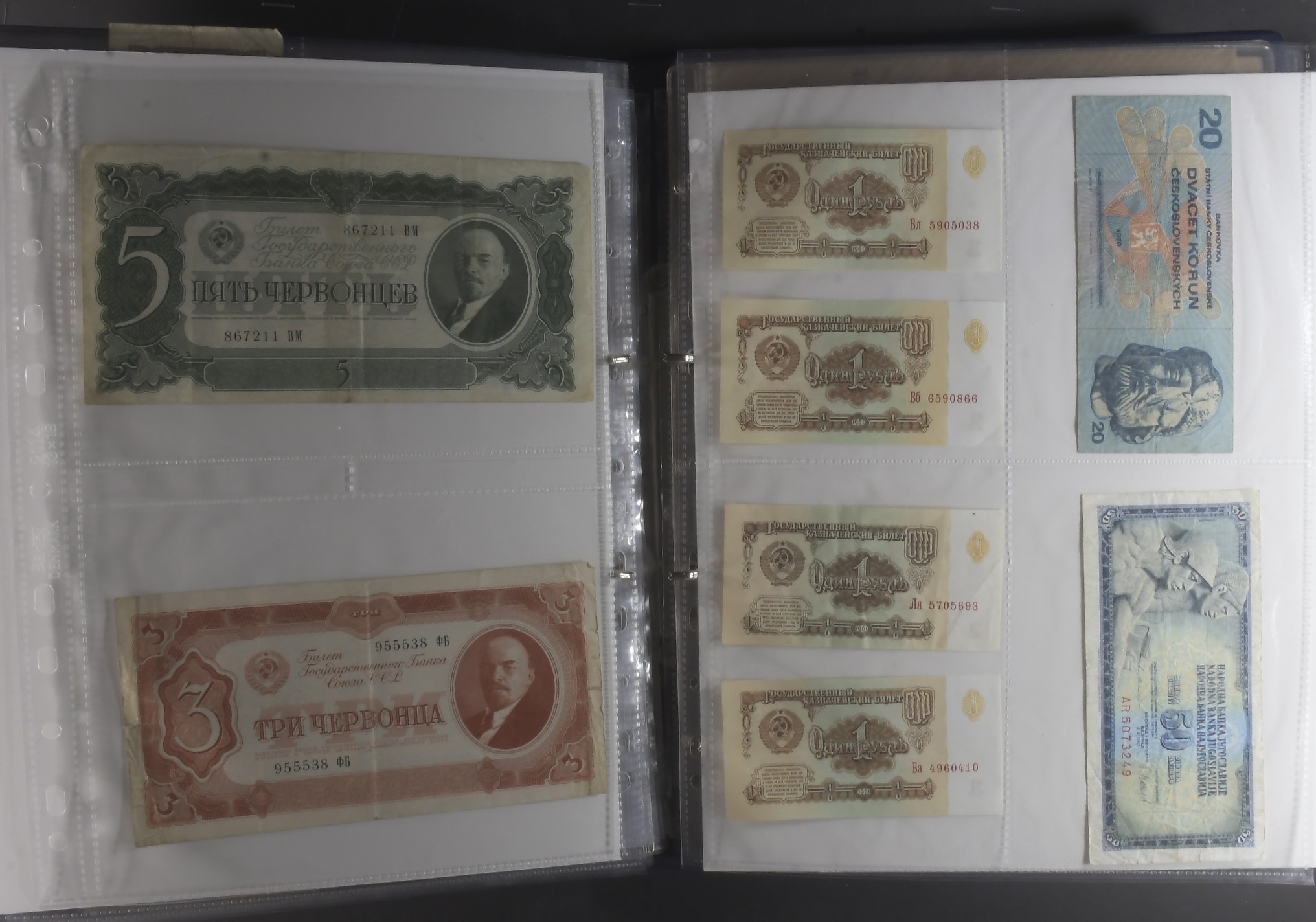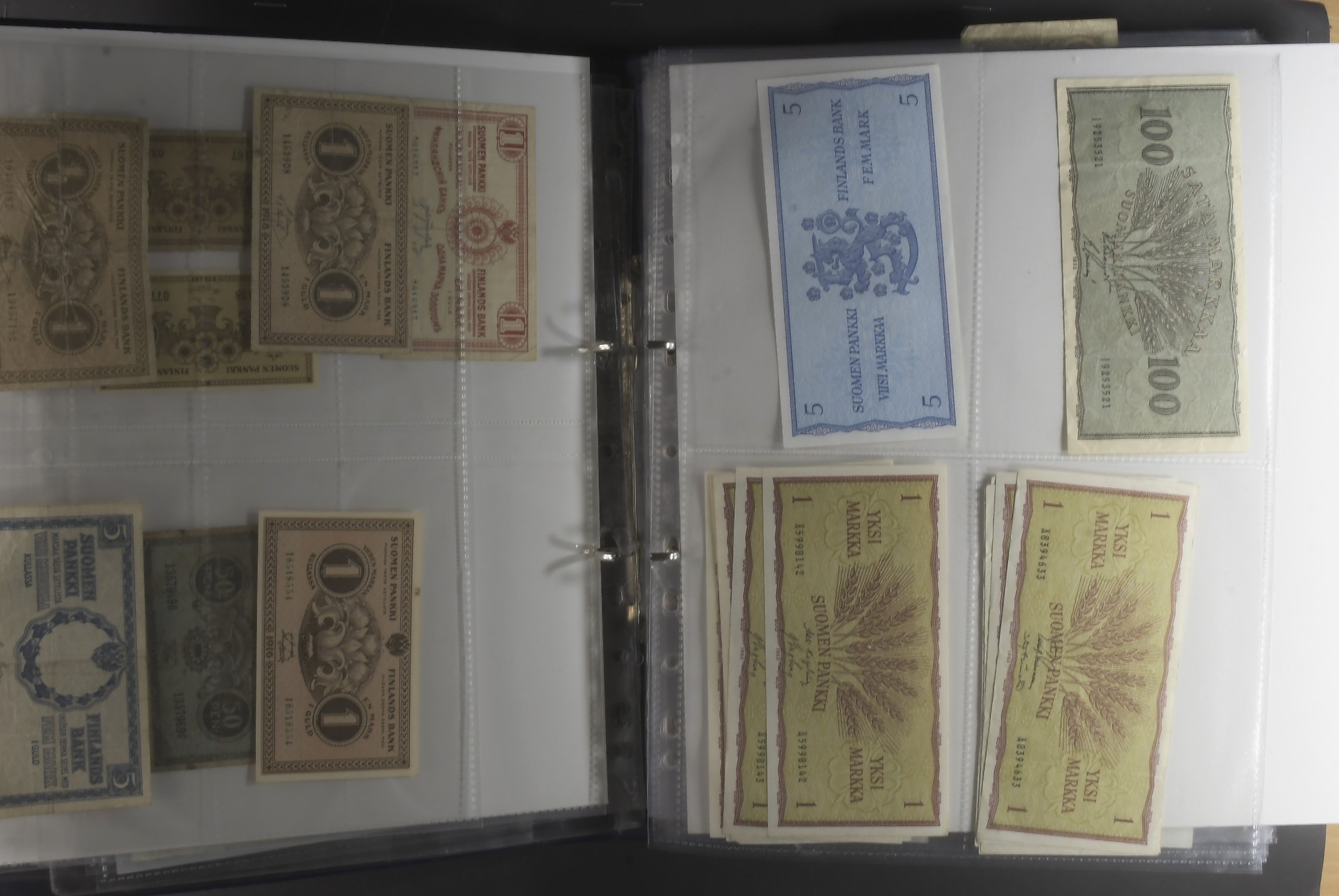 Banknotes, ALL WORLD. Collection of banknotes in album all world, including Finland and Russia. In total 84 pcs. Please inspect!