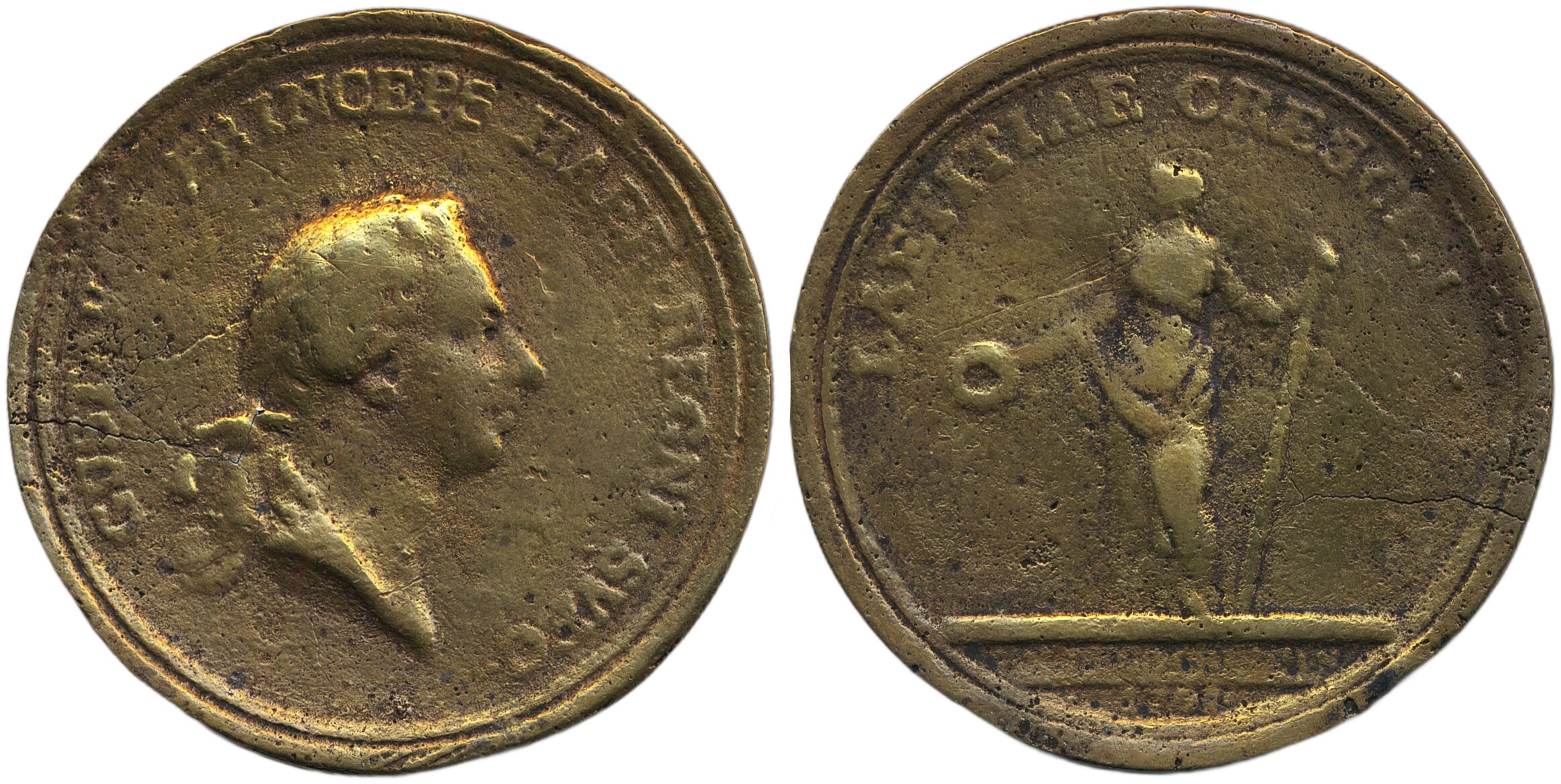 Medals, regal, Sweden. Gustav IV Adolf, Hild. 4, Silver medal, 51 mm, 38.41 g. Crown Prince Gustavs 16th birthday, by Daniel Fehrman. This medal shows a die break, which led to a new obverse die being made by Ljungberger (Hild. 4a). Gilt, scratched, corroded. SKM 4b. 1?